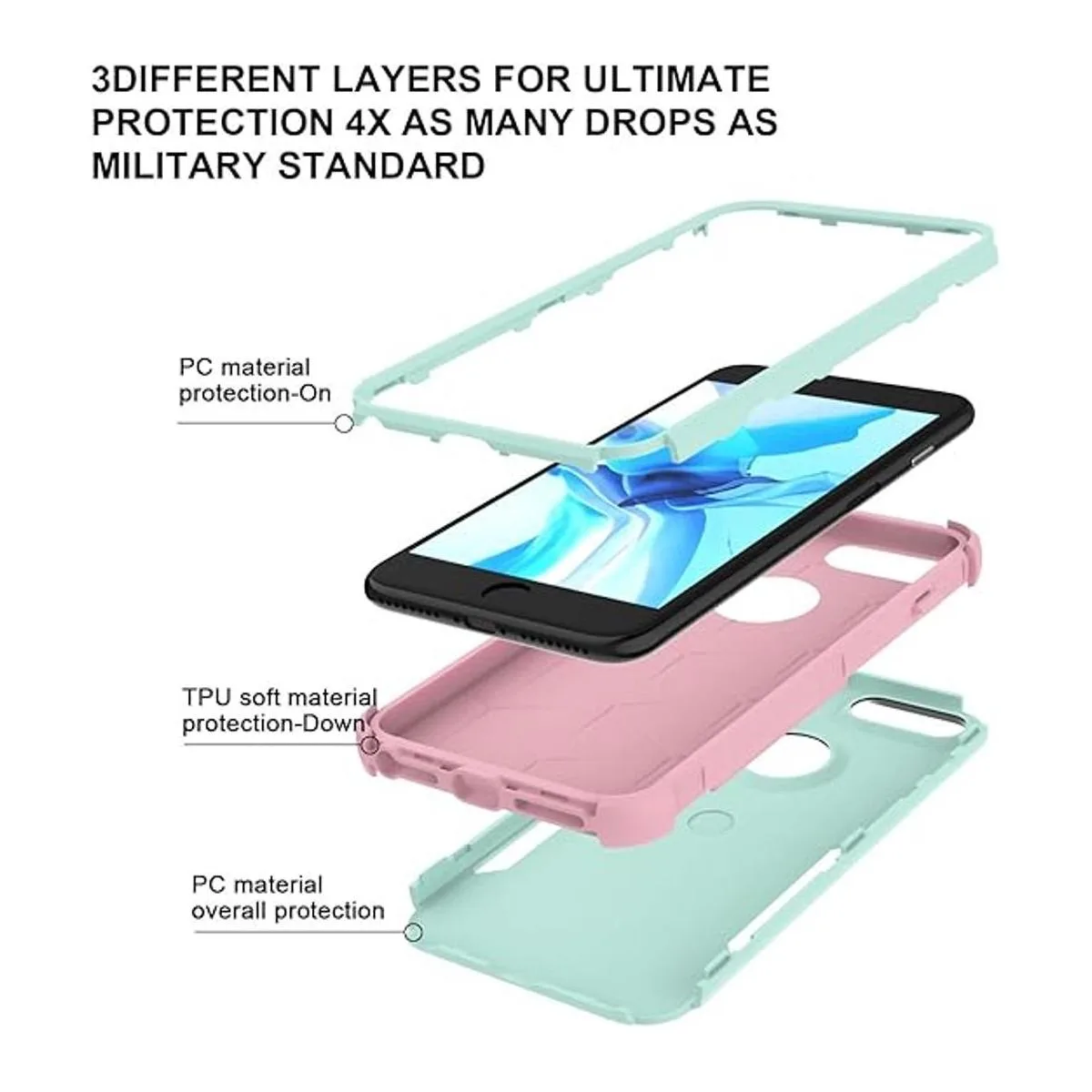 KKSTYLE Funda para iPhone 8 Plus, funda para iPhone 7 Plus, 5.5 pulgadas, resistente a los golpes, protección contra golpes, para mujeres, adolescentes, niñas, color turquesa