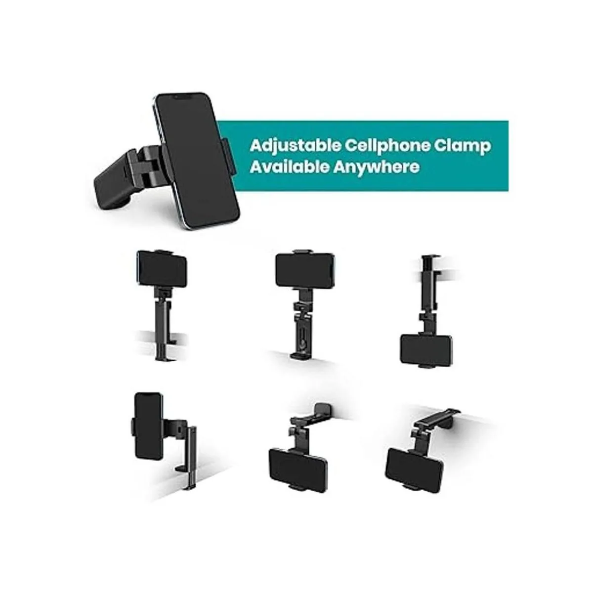 Abrazadera de teléfono duradera y estable: hecha de ABS y metal, que es duradera y estable que garantiza que tu teléfono se sujeta firmemente y se fija al escritorio. La base de abrazadera con resorte de alta calidad se adapta a cualquier objeto plano de hasta 1.57 pulgadas de grosor. La silicona antideslizante protege tu dispositivo de arañazos o caídas.