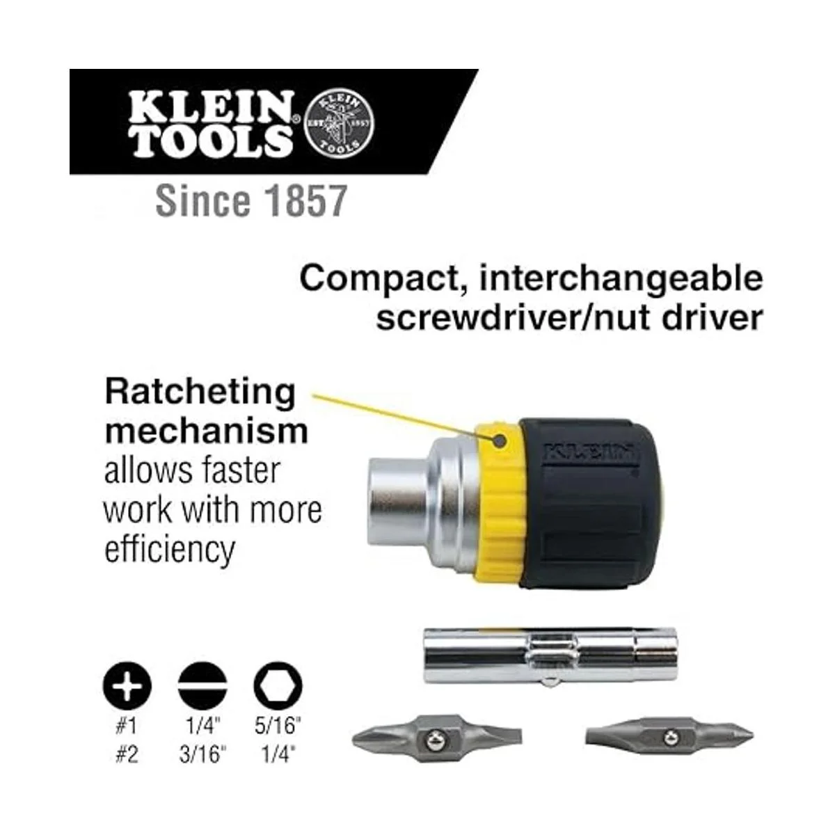 Klein Tool 32593 Desarmador corto de trinquete 6 en 1