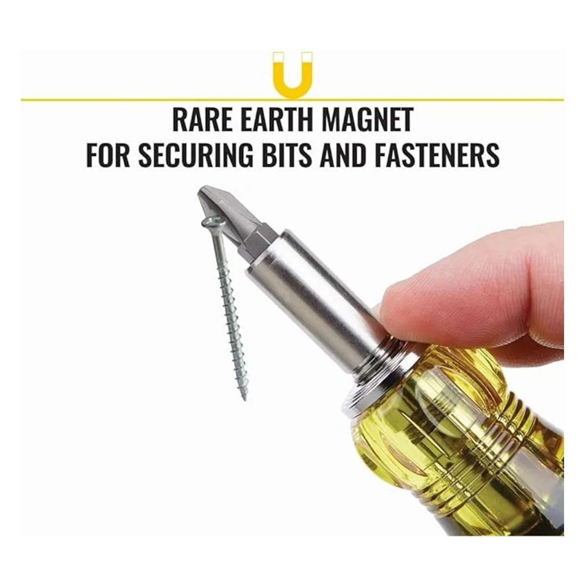 El soporte de brocas de acero inoxidable contiene un potente imán de tierras raras para asegurar brocas y cierres