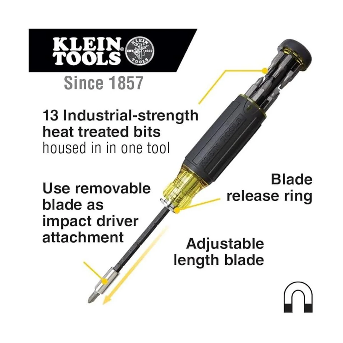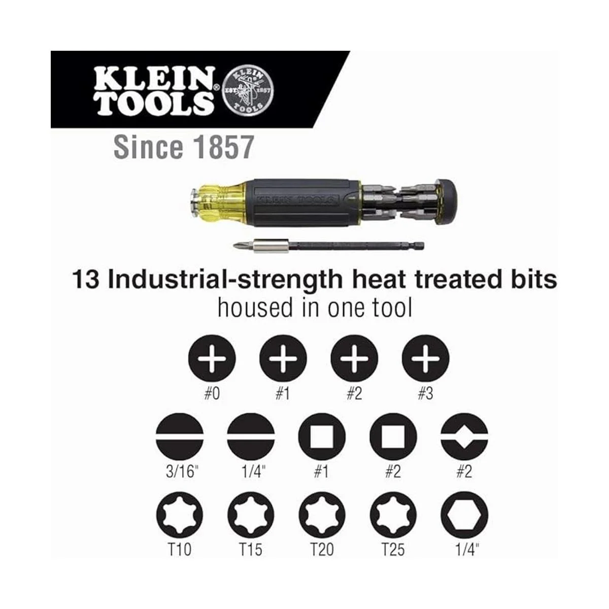 Klein Tools 32303 Destornillador multibroca destornillador de tuerca, juego de destornilladores magnéticos 14 en 1 con clasificación de impacto Phillips, ranurado, cuadrado, combinado, Torx