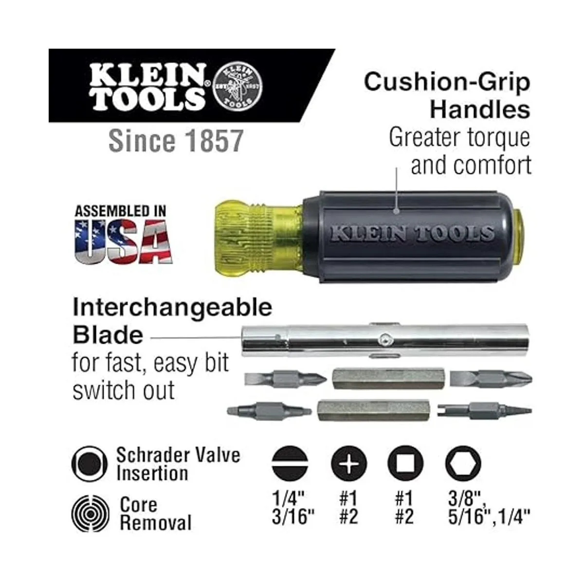 Klein Tools 32527, herramienta para núcleo de válvula Schrader, desarmadorllave para tuercas 11 en 1