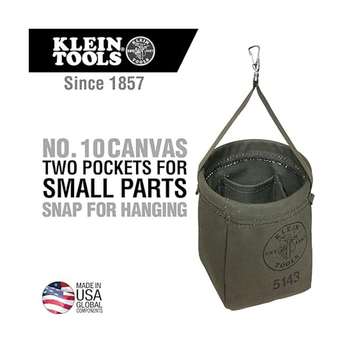 Klein Tools 5143 Bolsa de lona con dos bolsillos interiores y un clip a presión, hecha de lona número 10