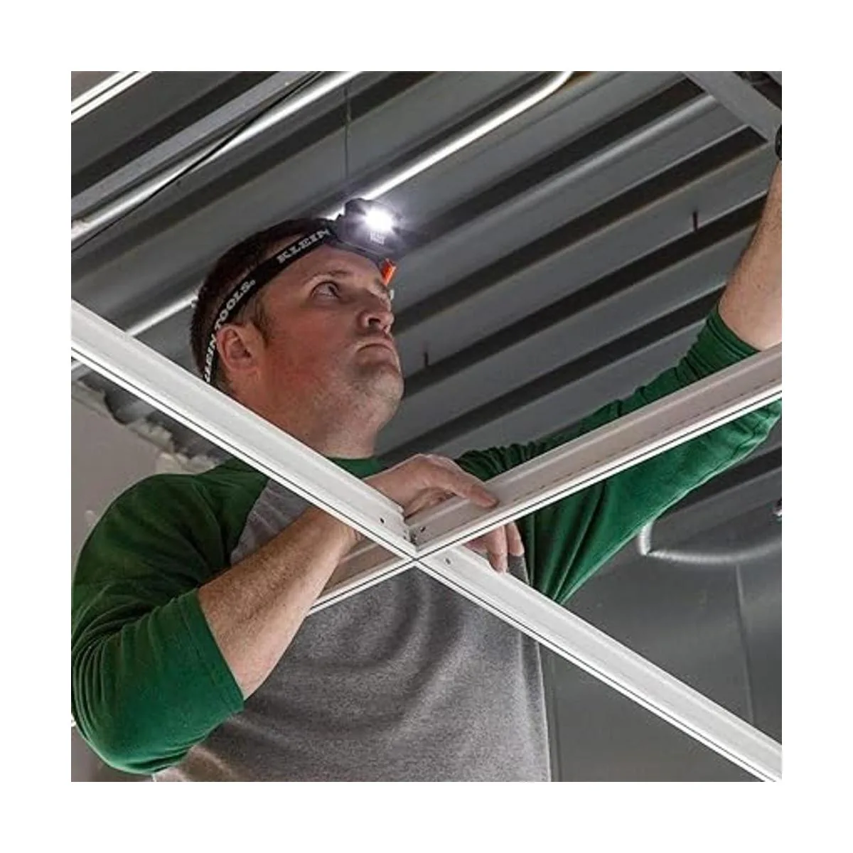 Klein Tools 56049 Linterna recargable para faros o LED, correa de tela ajustable con marcadorsoporte para lápices, 260 lúmenes, para trabajo y exteriores