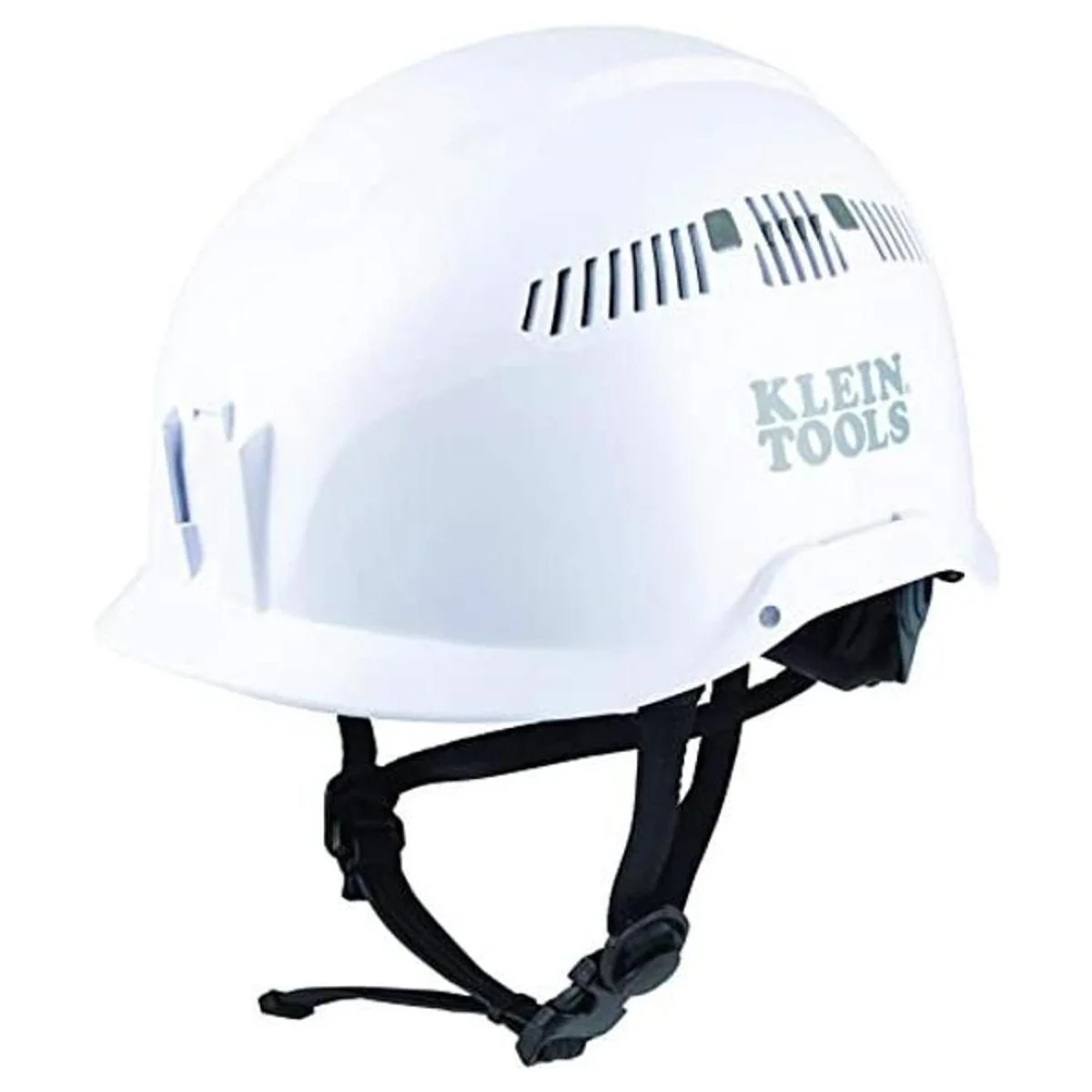 Klein Tools 60149 Casco de seguridad, ventilado, correa de barbilla, probado según estándares de seguridad industriales resistentes, color blanco