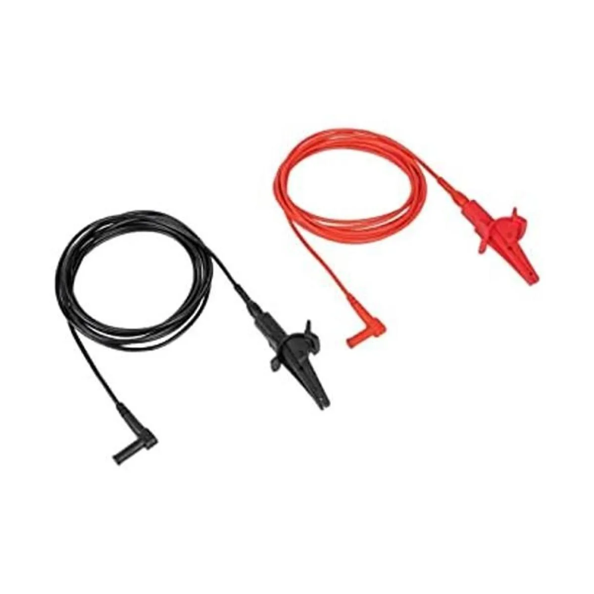 Incluye 1 par de cables de prueba universales de ángulo recto con enchufe banana a clip de cocodrilo resistente