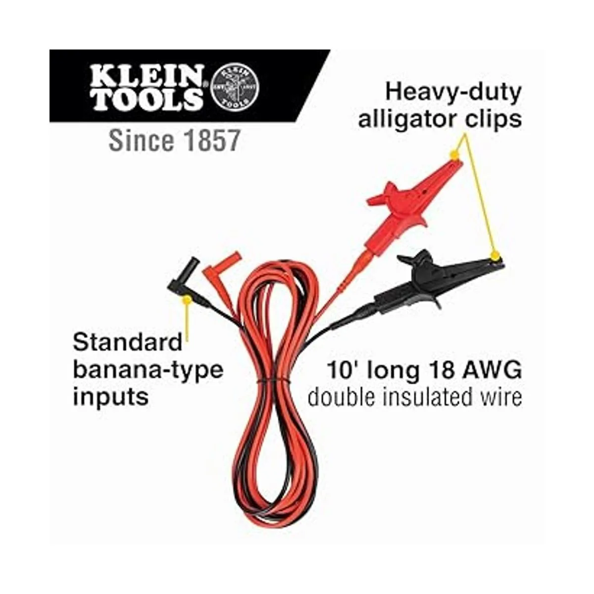 Klein Tools 69367 Cables de prueba de clip de cocodrilo, cables de medidor de repuesto de alta resistencia, para todos los metros con cables de medidor de enchufe de plátano, 10 pies
