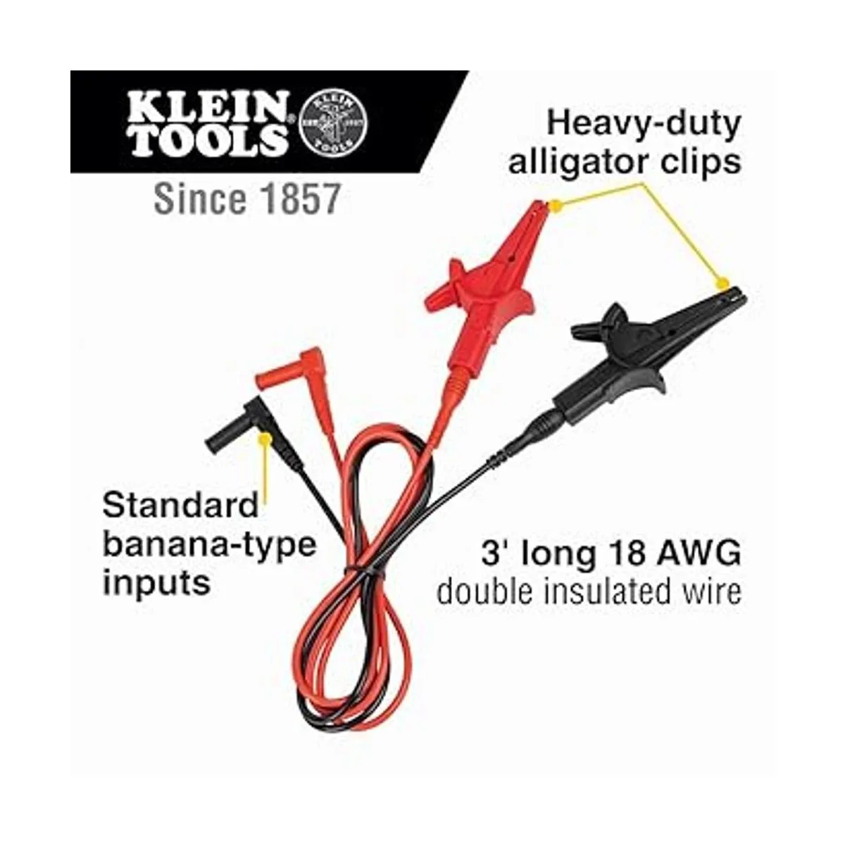 Klein Tools 69381 Cables de prueba de clip de cocodrilo, cables de medidor de repuesto de alta resistencia, para todos los metros con cables de medidor de enchufe de plátano, 3 pies