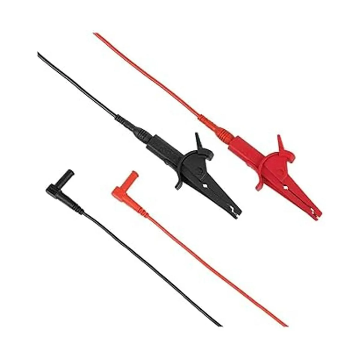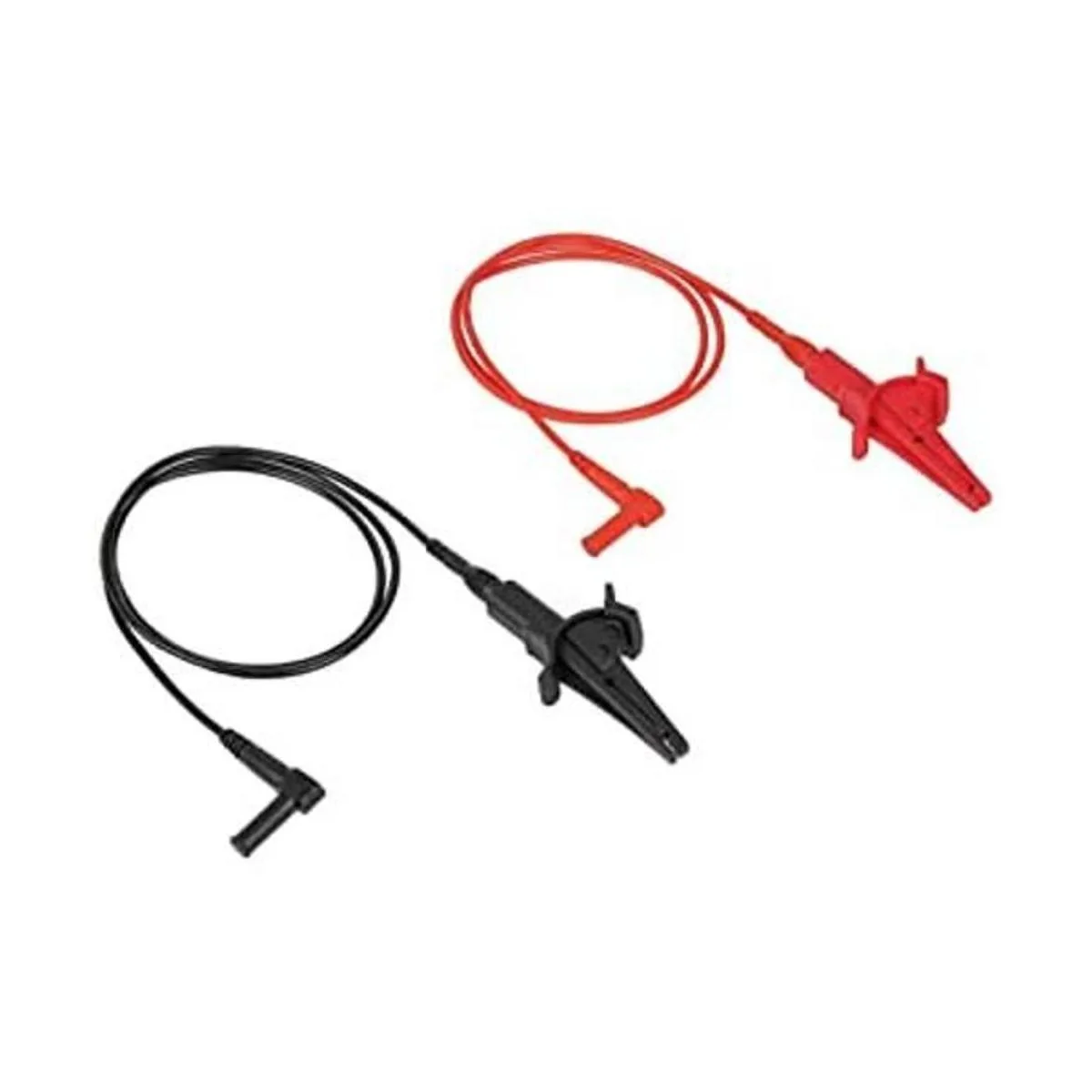 Incluye 1 par de cables de prueba universales de ángulo recto con enchufe banana a clip de cocodrilo resistente