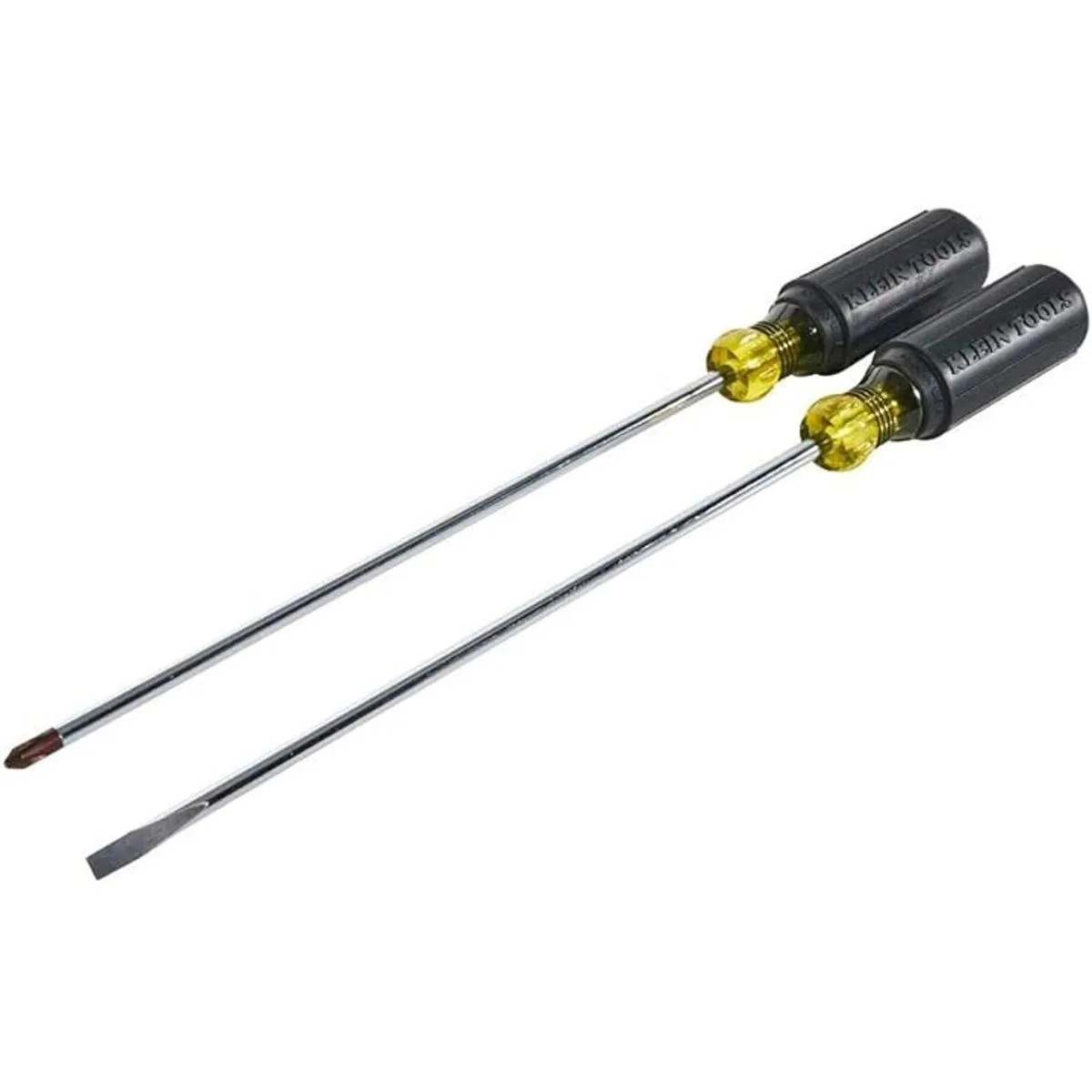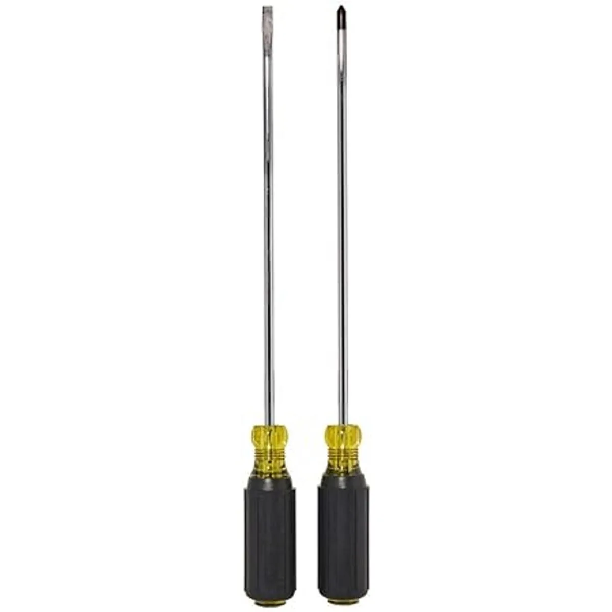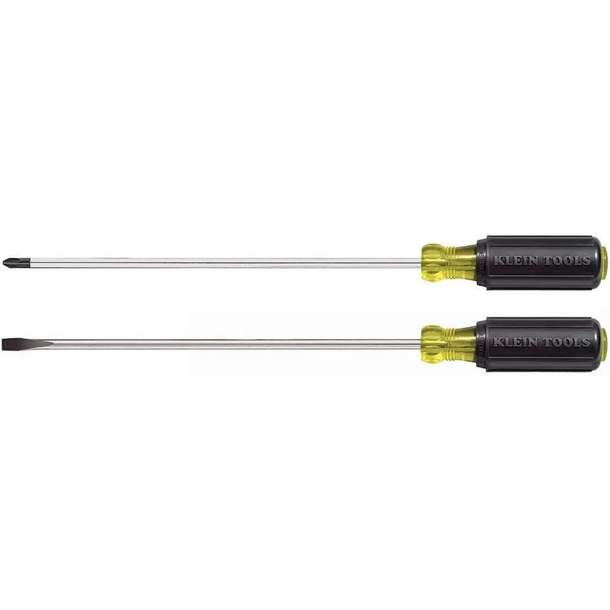 Klein Tools 85072 Juego de destornilladores ranurados y Phillips de hoja larga con ejes tratados térmicamente y agarres acolchados, 2 piezas