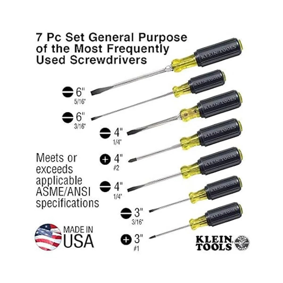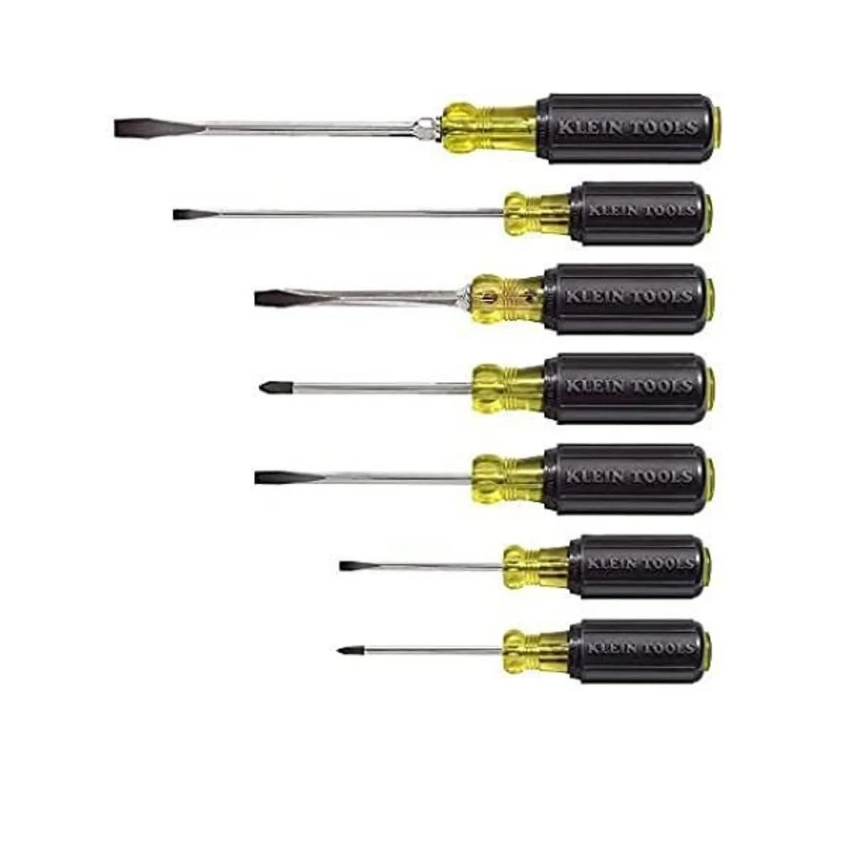 Klein Tools 85076 Juego de destornilladores, ranurados y Phillips con asas antideslizantes de agarre y punta de punta de agarre, 7 piezas