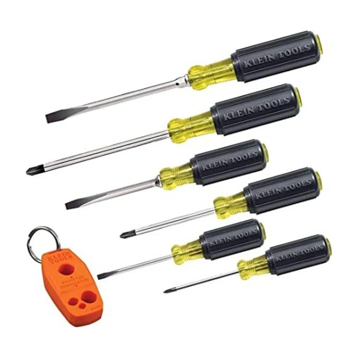 Klein Tools 85146 Juego de destornilladores con magnetizadordesmagnetizador para puntas magnéticas, 3 ranuras, 3 Phillips, agarre de cojín antideslizante, 6 piezas
