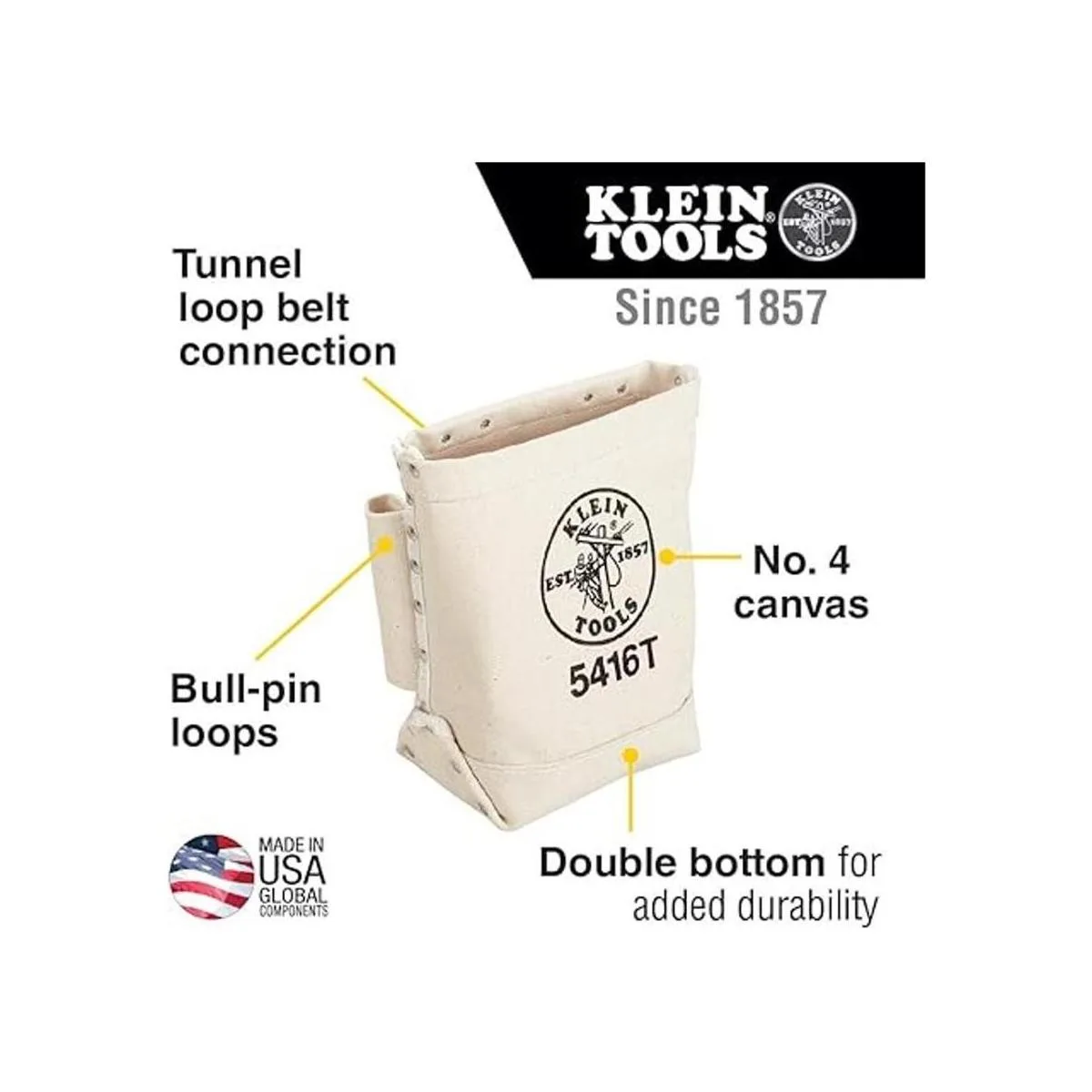 Klein Tools Bolsa de herramientas 5416T, bolsa de pernos y pasador, lona n. 4 con conexión de túnel, 5 x 10 x 9 pulgadas
