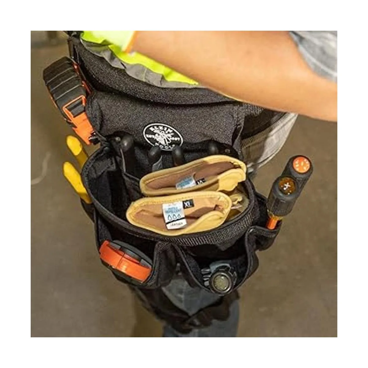 Klein Tools Bolsa de herramientas 5718, bolsa de utilidad de la serie PowerLine se adapta a cinturones de herramientas de 2.5 pulgadas, costuras reforzadas con remaches fuertes, 8 bolsillos anchos