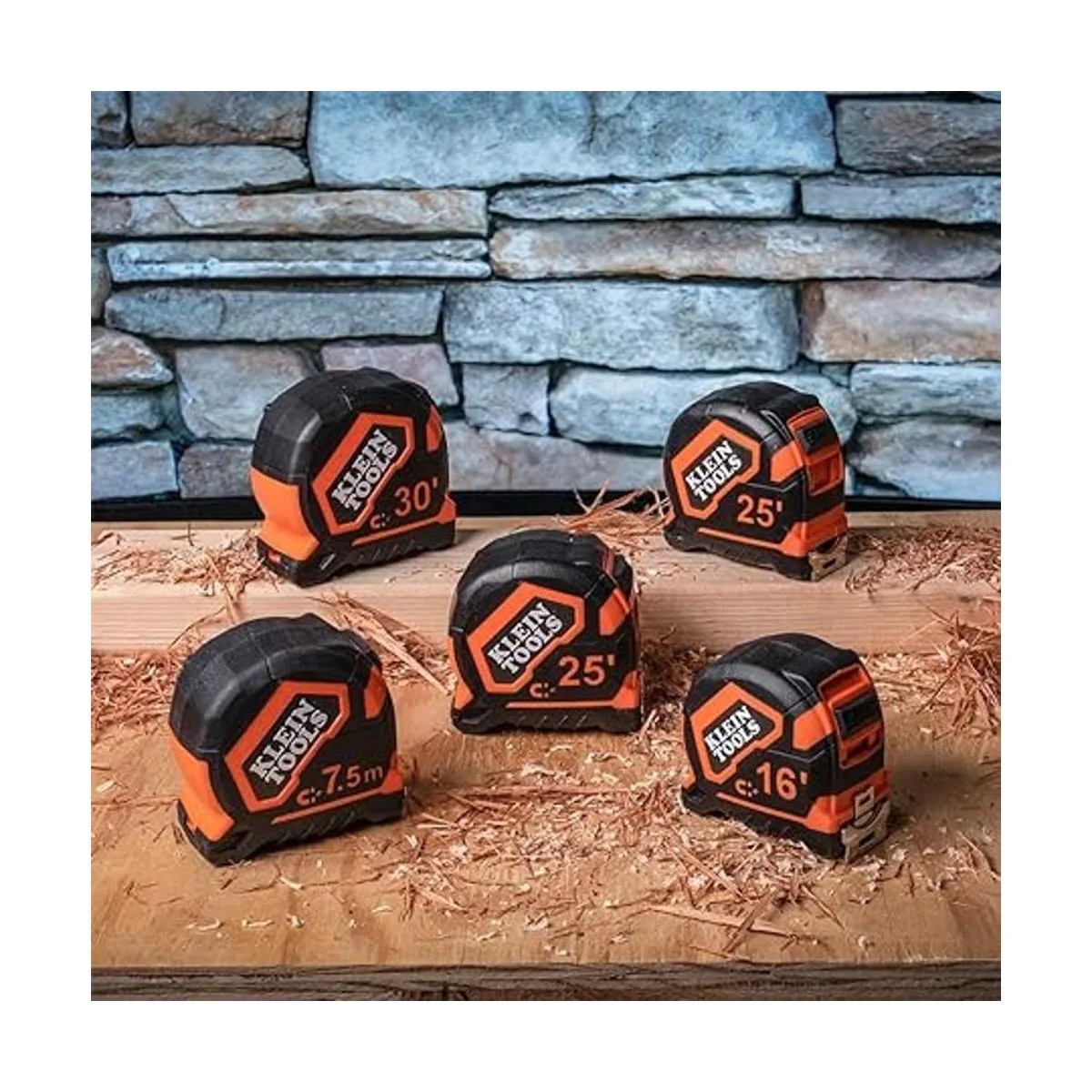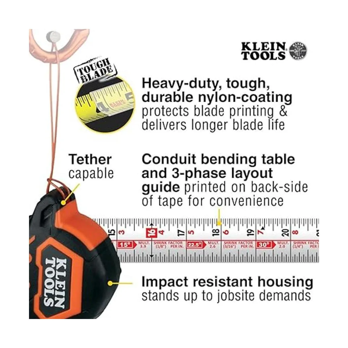 Klein Tools Cinta métrica 9216, cinta métrica resistente con hoja reforzada de nailon de doble cara de 16 pies, con clip de metal para cinturón