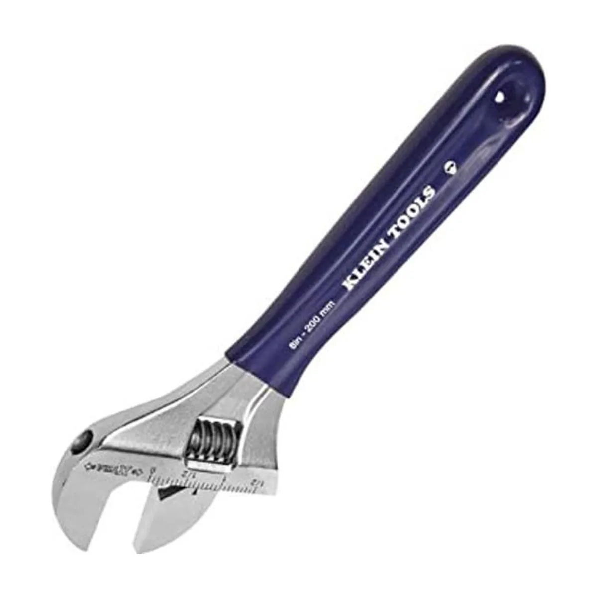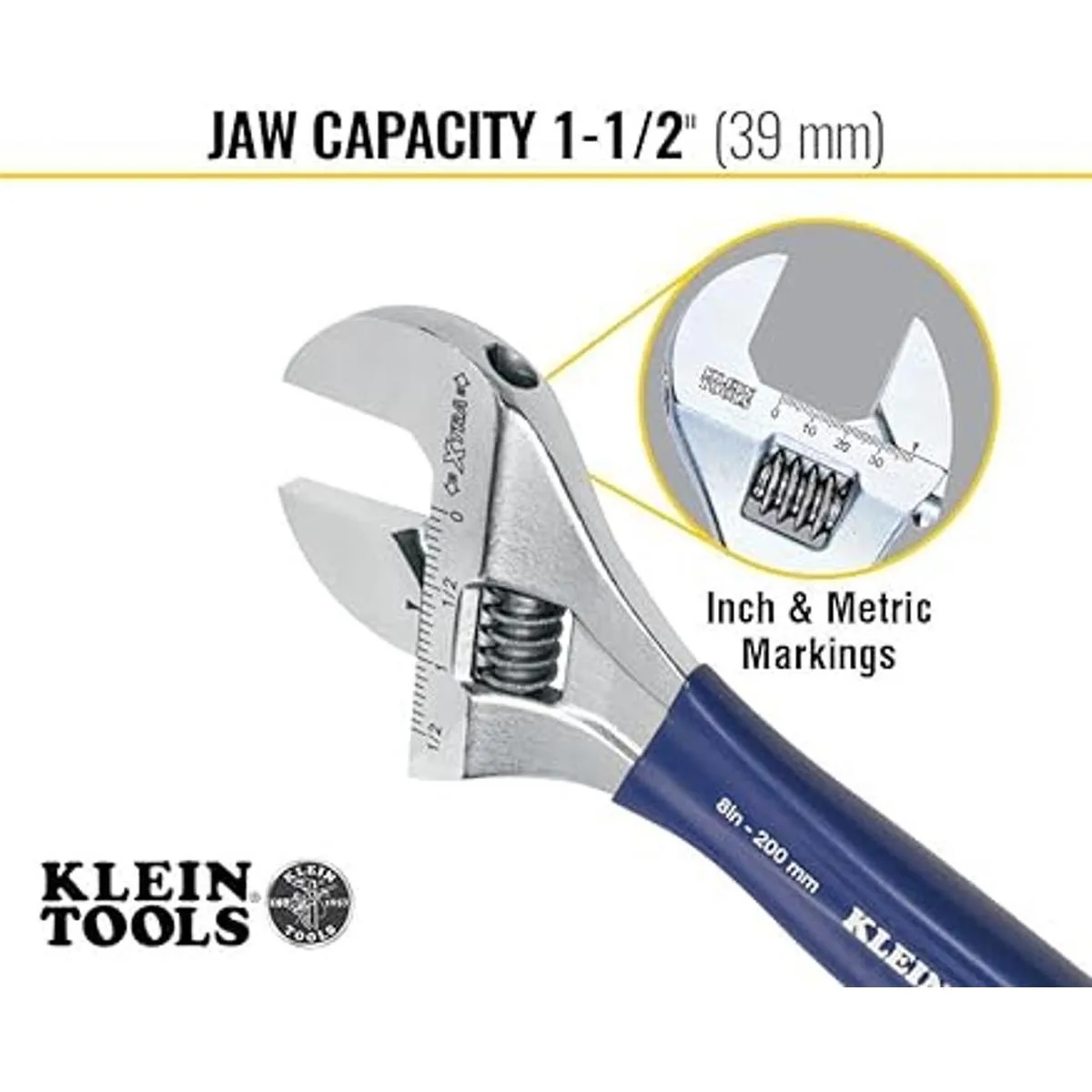 Klein Tools D5098 Llave ajustable, llave de accionamiento forjada de mandíbula extra ancha con acabado cromado pulido, 8 pulgadas