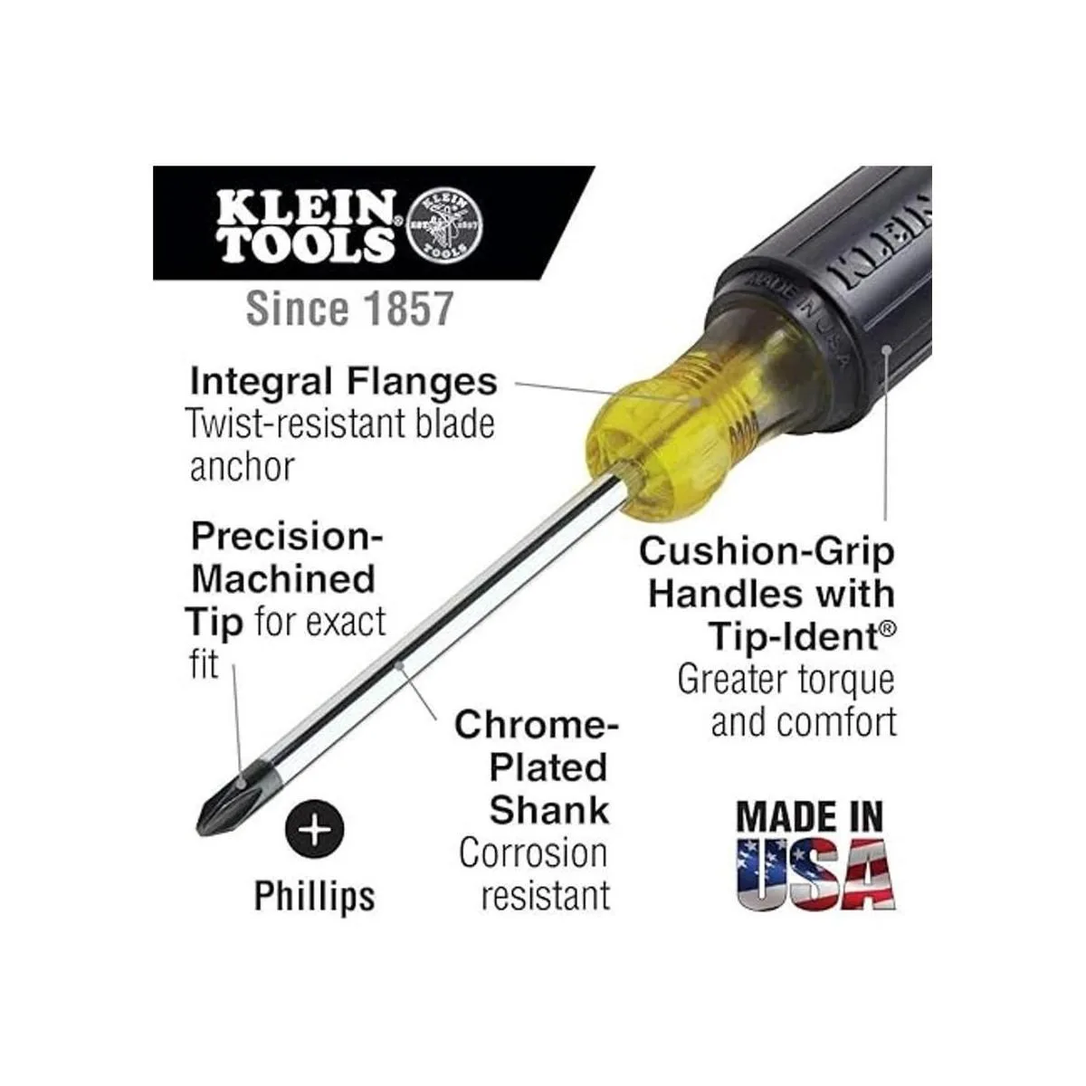 Klein Tools Destornillador 6034, punta Phillips 2 con mango de agarre amortiguador, destornillador electricista mecanizado de precisión, 8 pulgadas