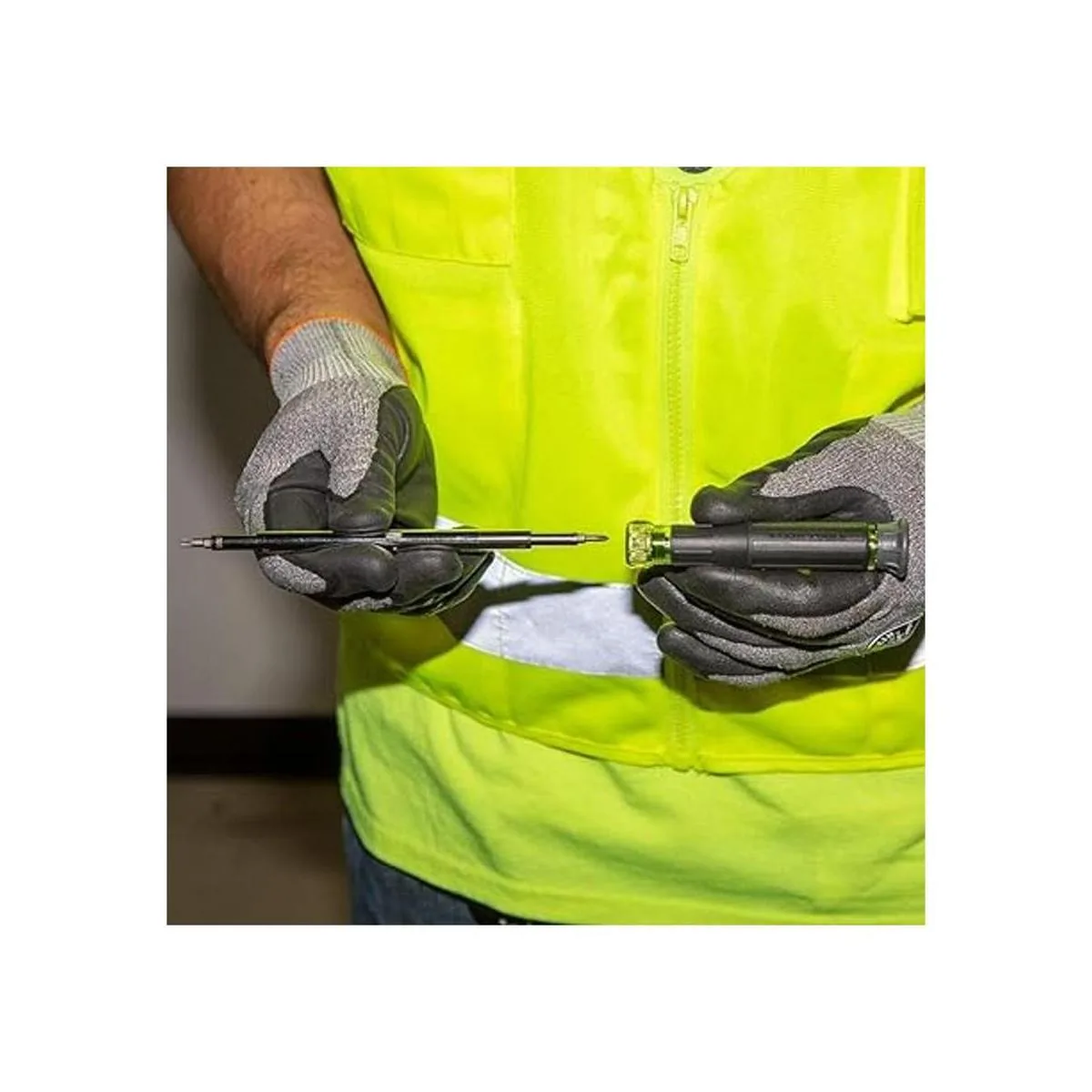 Destornillador de precisión y destornilladores de tuerca integrados que incluyen 14 de los tamaños más comunes en una sola herramienta.