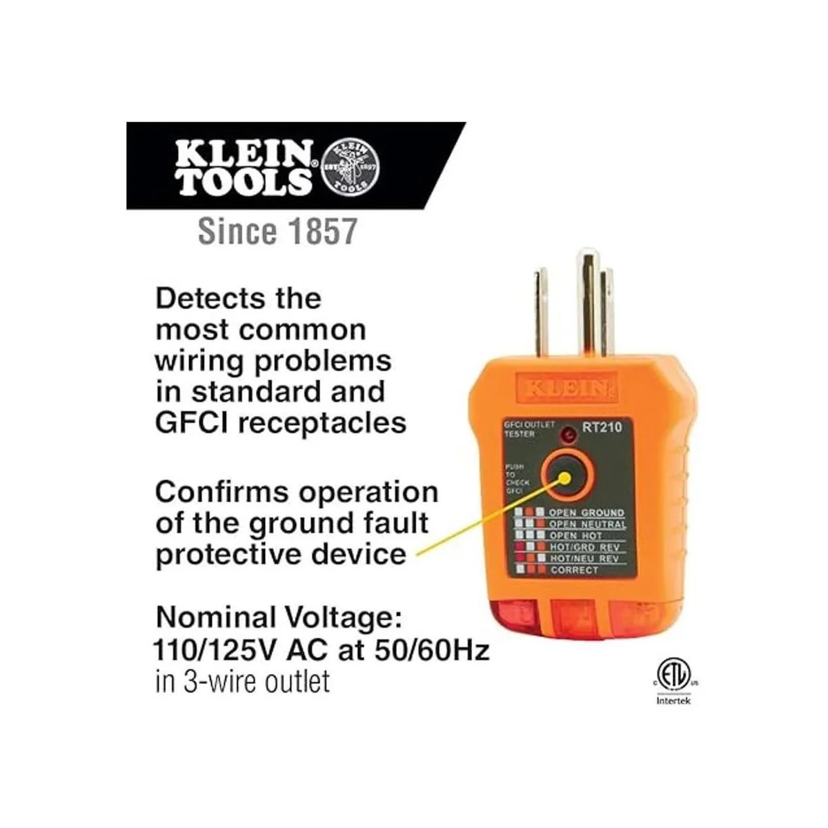 Klein Tools Probador de salida RT210, probador de receptáculo para tomas de corriente alterna estándar de América del Norte, detecta problemas comunes de cableado