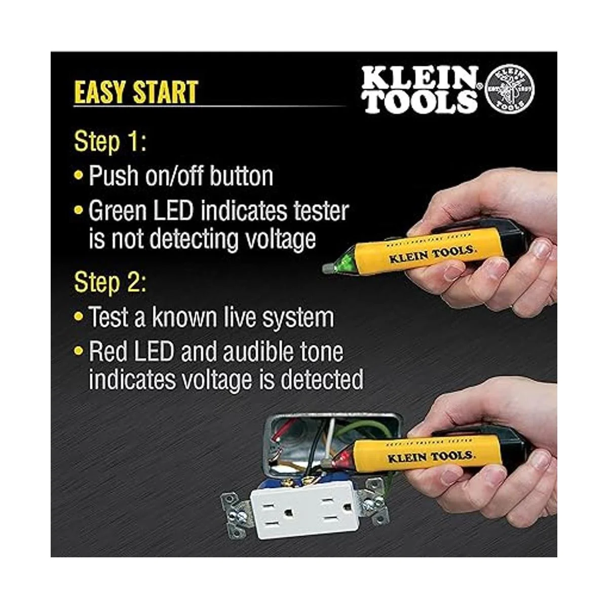 Klein Tools Probador de voltaje NCVT1P, detector de voltaje sin contacto, 50 V a 1000 V CA, alarmas LED audibles e intermitentes, clip de bolsillo