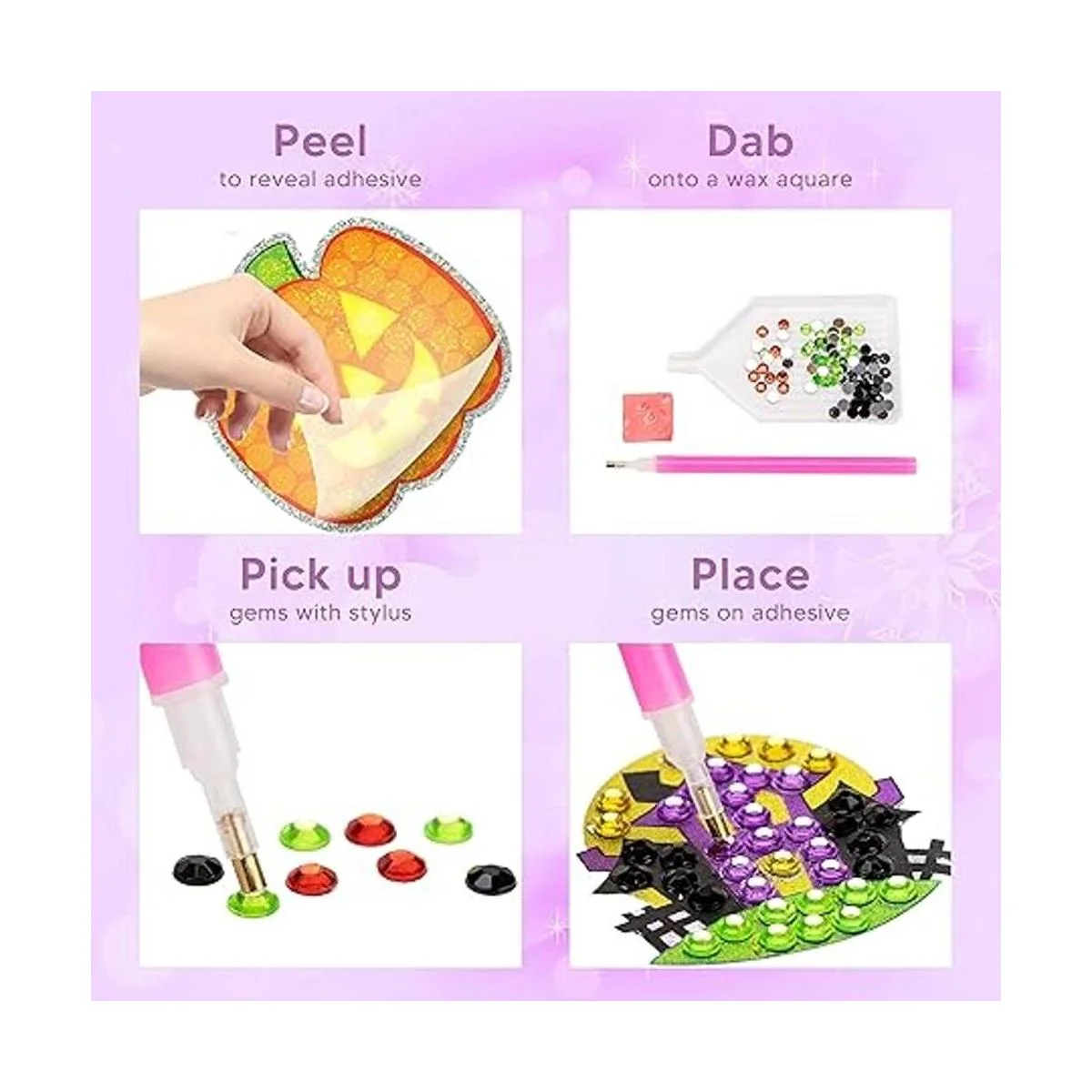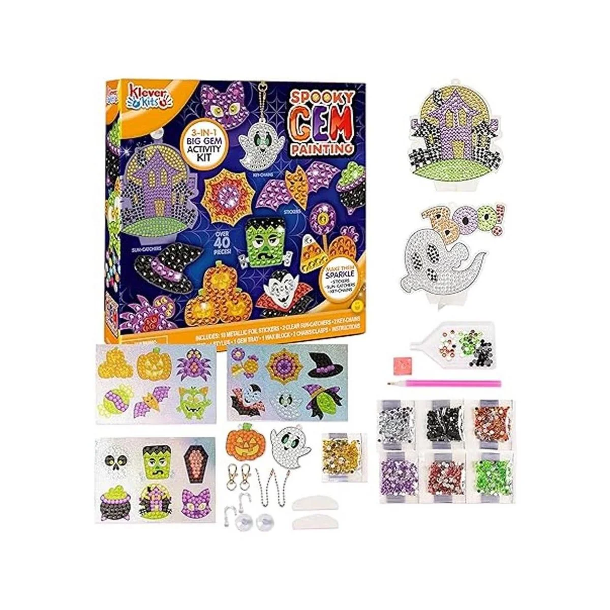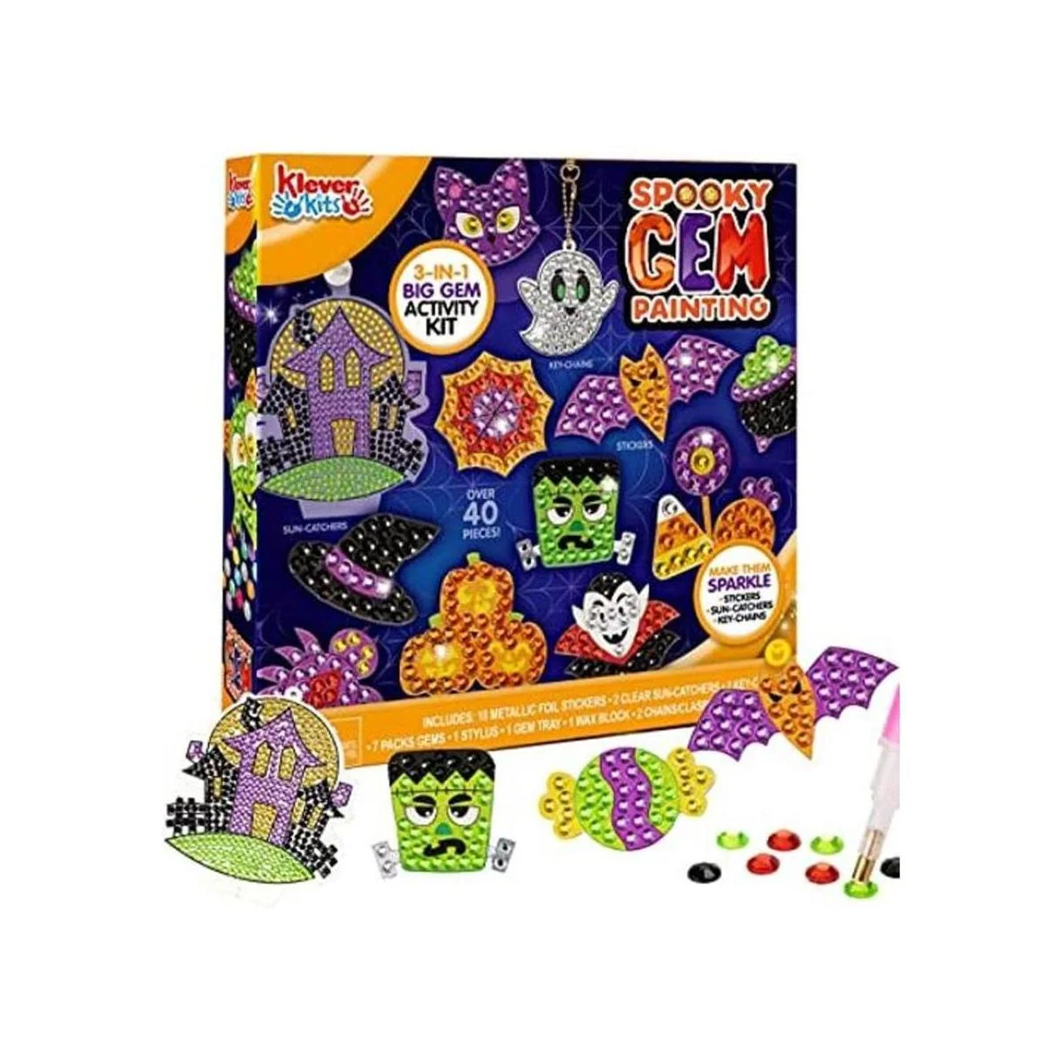 Klever Kits Kit de pintura de diamantes de gemas grandes de Halloween, crea tus propias calcomanías mágicas y atrapasoles, arte de diamante para niños, suministros de arte de pintura de bricolaje, regalo de manualidades para niñas
