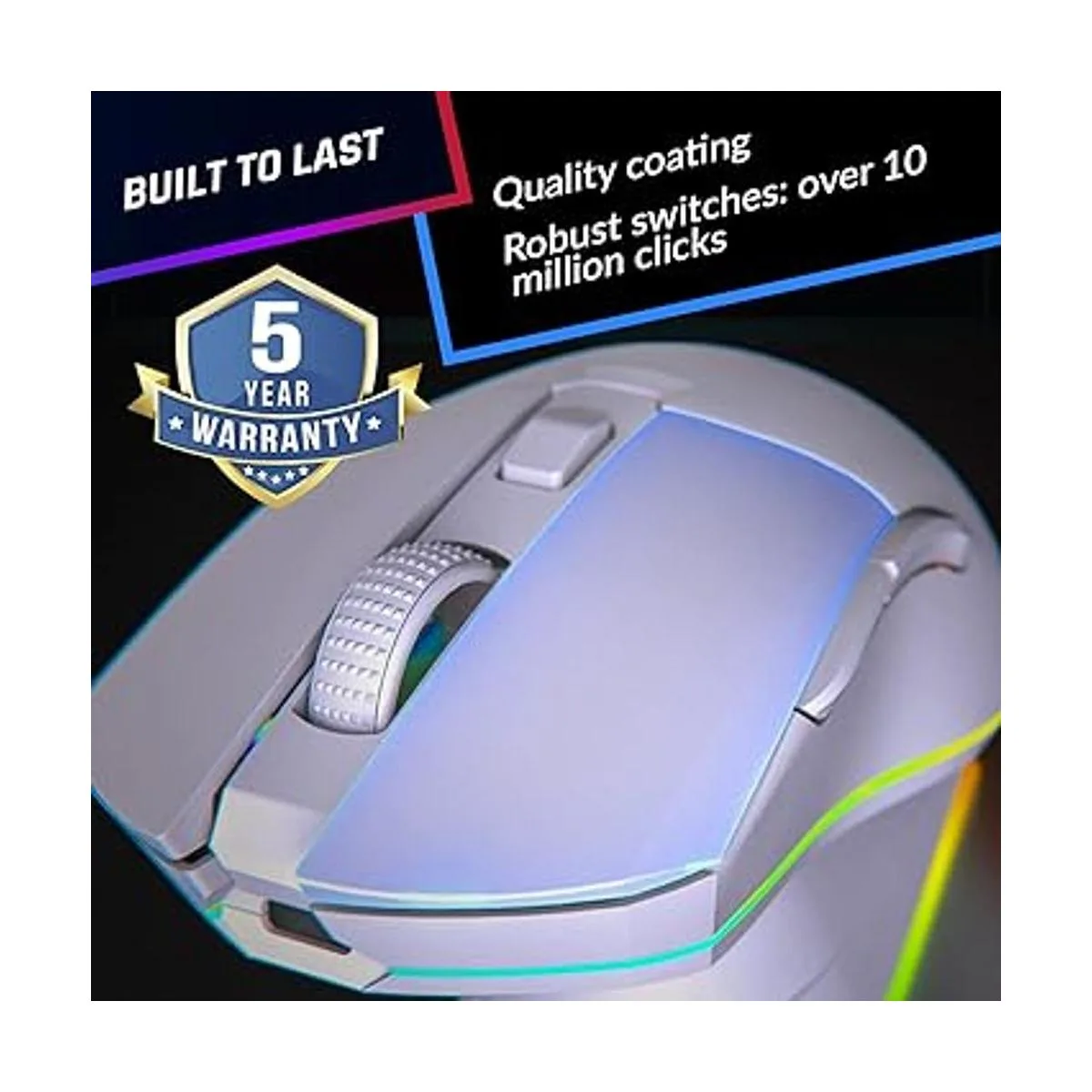 KLIM Blaze Pro Mouse inalámbrico recargable para juegos con base de carga RGB Versión 2022 Sensor de alta precisión y batería de larga duración hasta 6000 DPI gran mouse inalámbrico para juegos de PC blanco