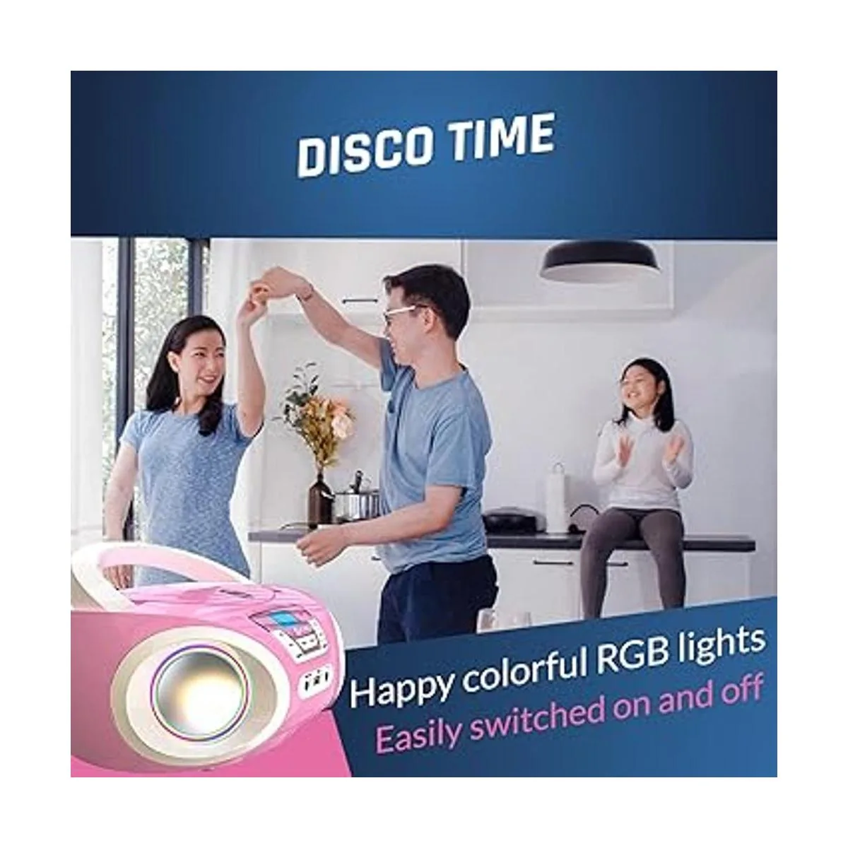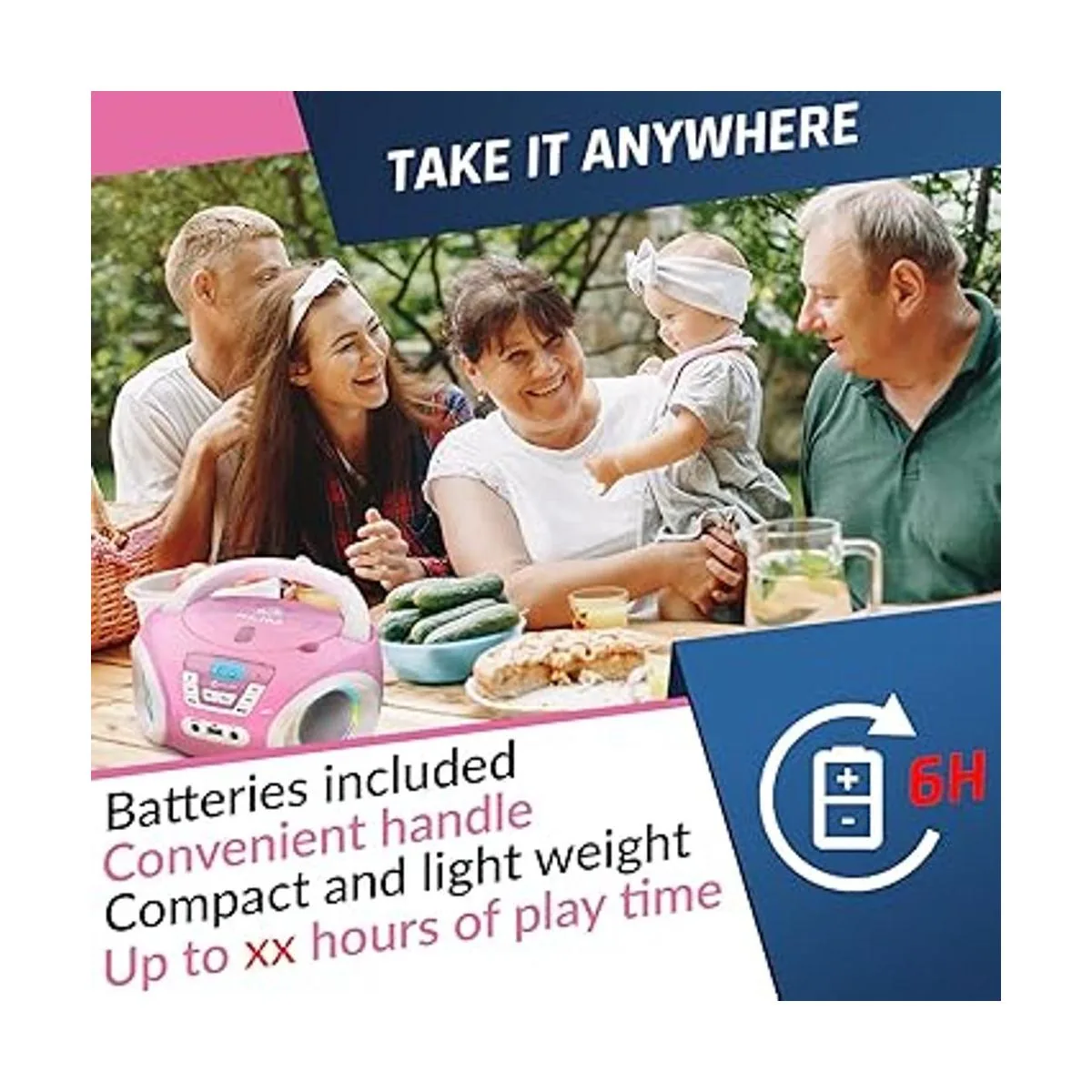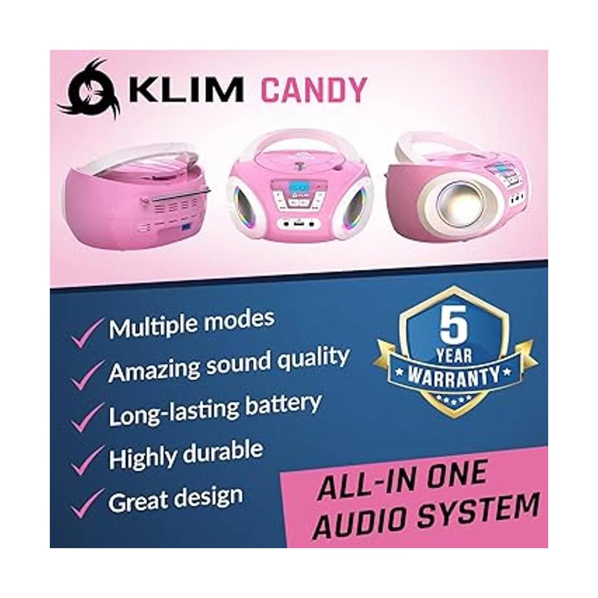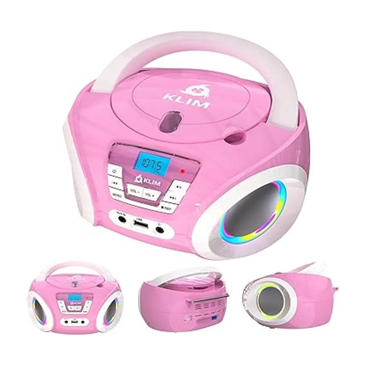 KLIM Candy Kids Boombox Reproductor de CD para niños, nuevo 2022 radio FM pilas incluidas lindo reproductor de CD de radio rosa con altavoces para niños y niños pequeños
