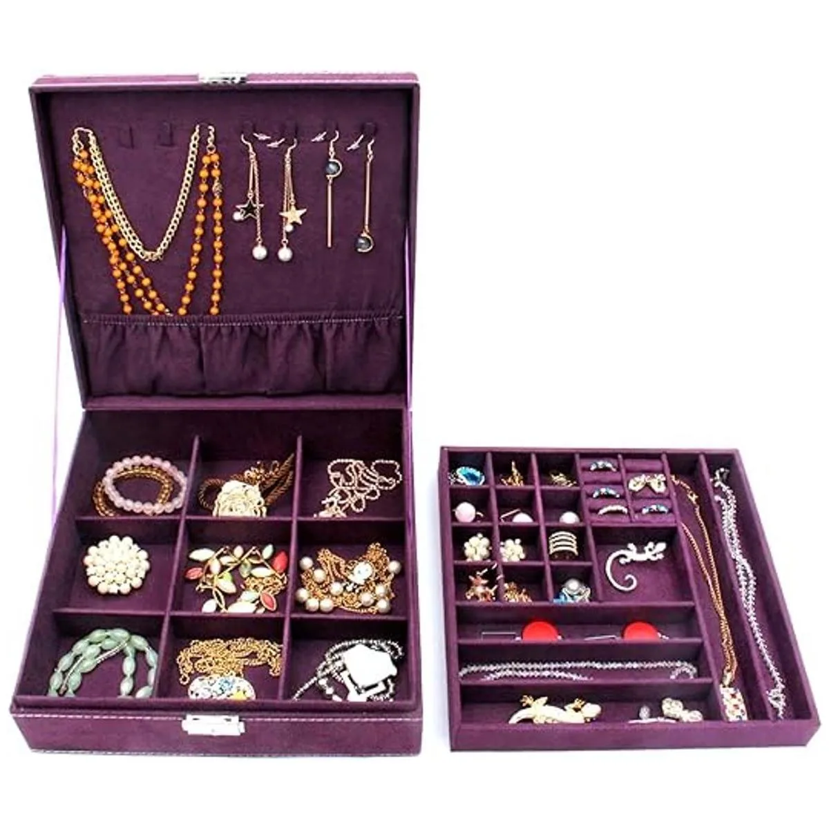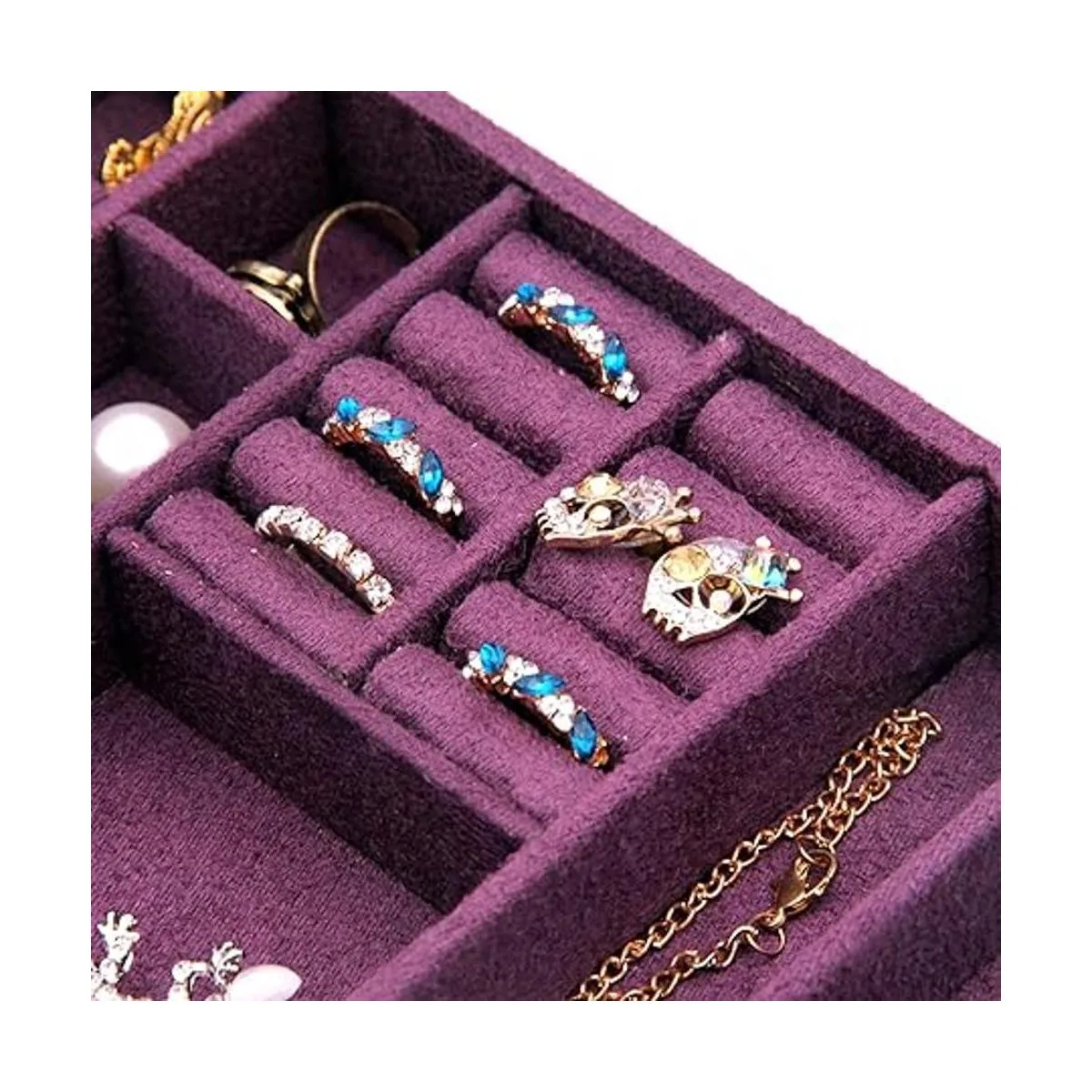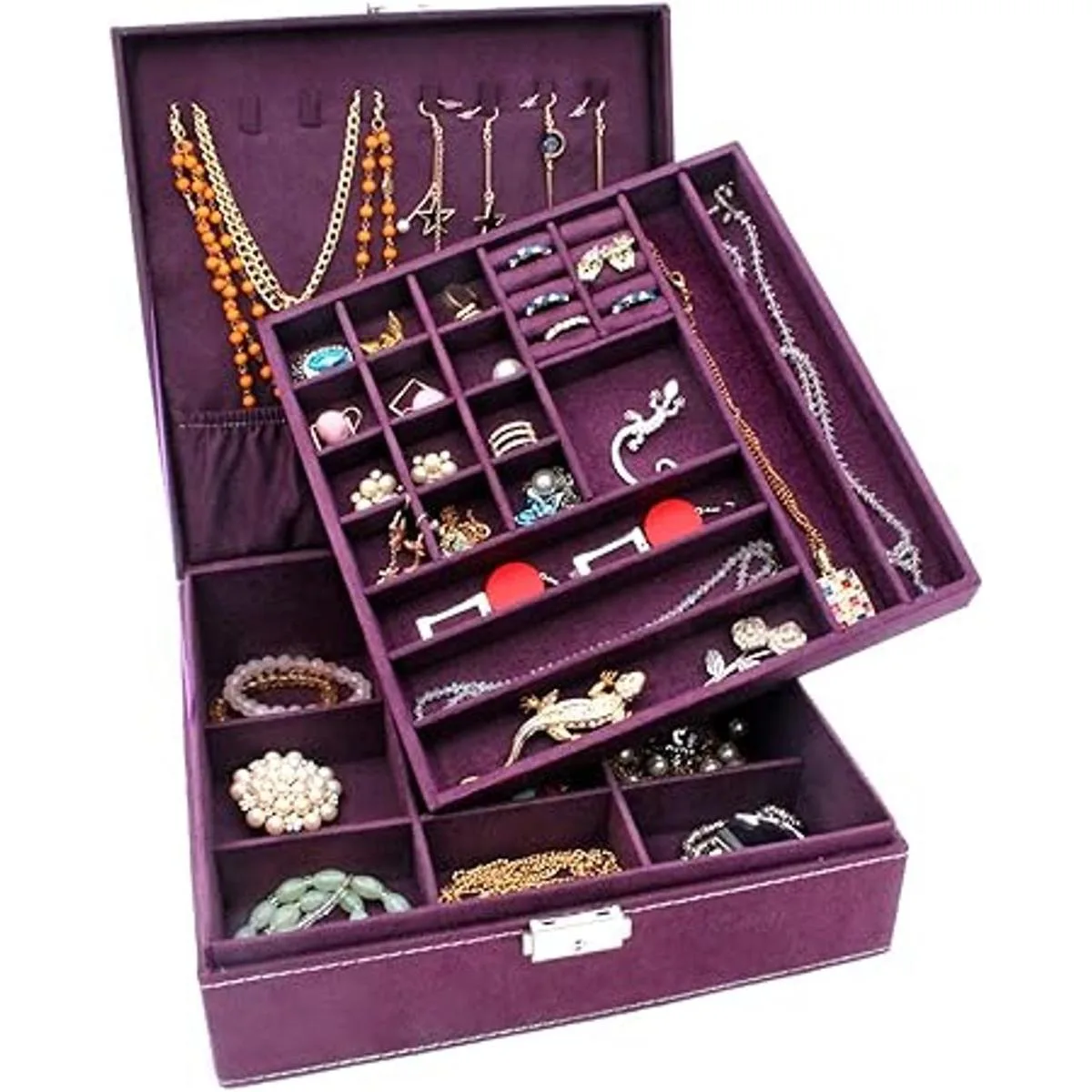 KLOUD City Estuche organizador de joyería de dos capas con cerradura morado