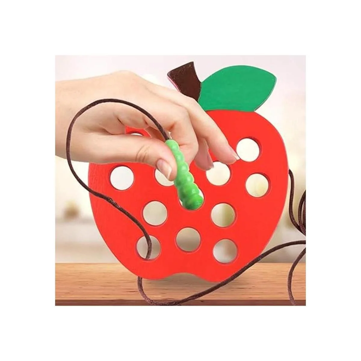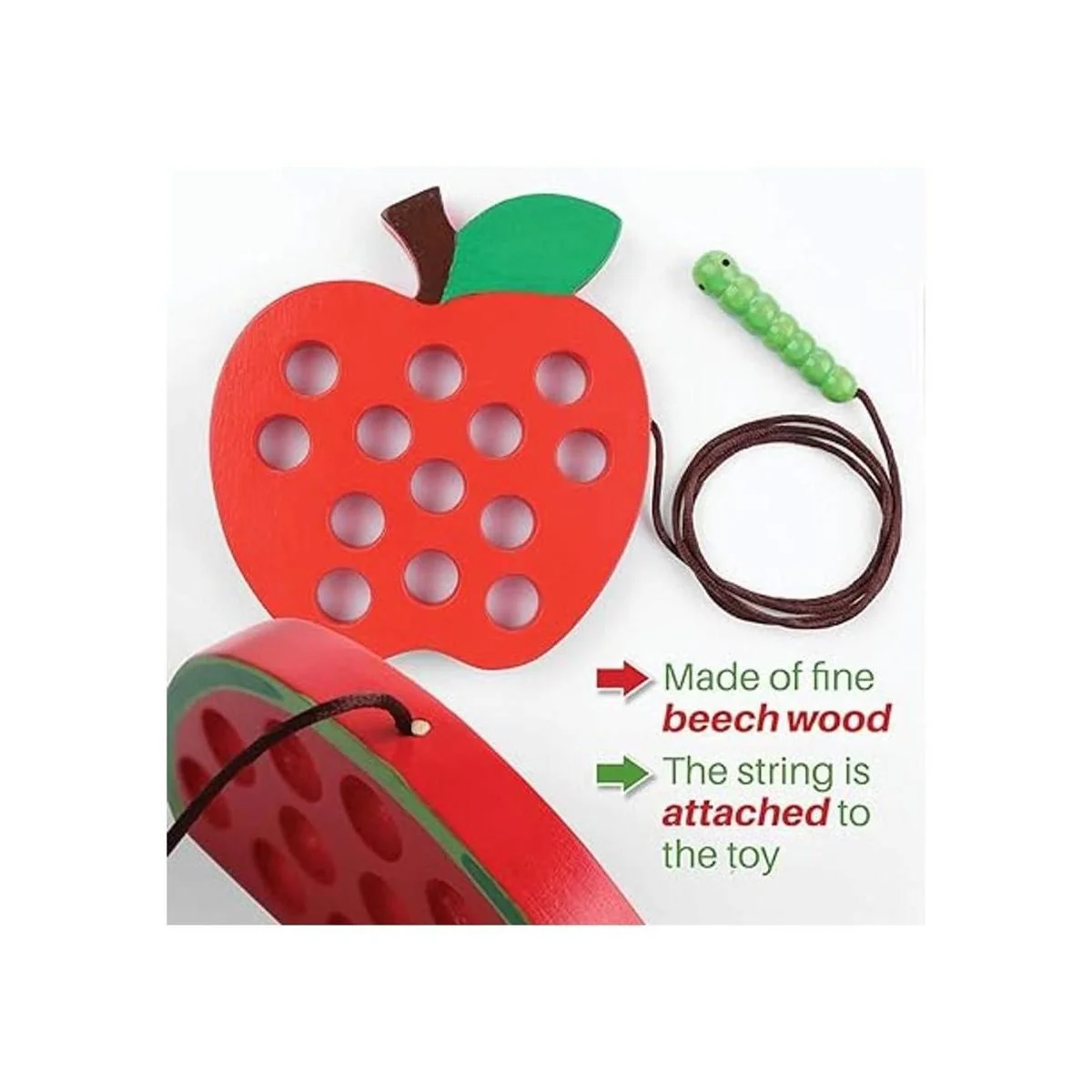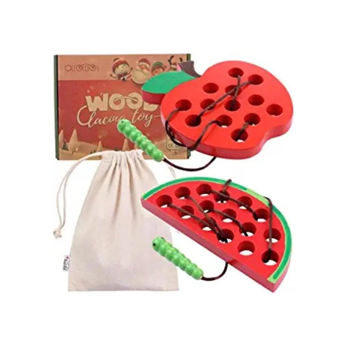 Juguetes de cordones para niños: divertido juguete de hilo de madera para tus hijos que incluye 1 juguete de manzana de cordones y 1 juguete de sandía que puede ayudar a desarrollar las habilidades de cordones y costura de tu bebé. Un juguete de cordones perfecto para niños con una bolsa de almacenamiento que puedes utilizar para poner el juguete de cordones de madera y llevarlo a cualquier lugar que desees. También tiene una calcomanía de frutas adicional para que tus hijos disfruten.