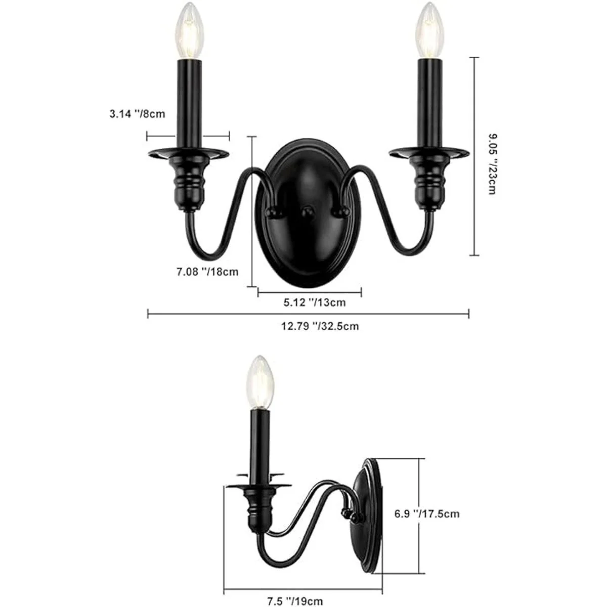 Tamaño moderado: el tamaño de las luces de pared vintage es moderado, por lo que no se verá molesto en ningún lugar. La altura de la base es de 7.1 pulgadas y el ancho es de 4.7 pulgadas. La altura de la vela eléctrica de estos apliques de pared de vela es de 9.05 pulgadas. Después de la instalación, el ancho total es de 12.8 pulgadas y la altura es de 9.4 pulgadas. La distancia entre el candelabro y la pared es de 7.5 pulgadas.