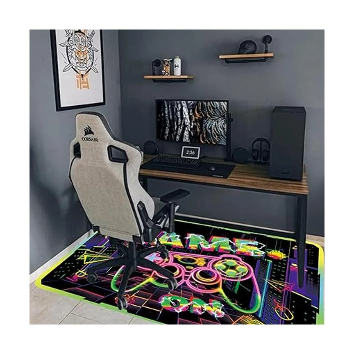 Luz negra/reactiva UV: esta alfombra de área puede brillar con la luz negra para crear un ambiente de juego colorido, muy adecuada para sala de juegos, hace que tu habitación se vea más fresca.
