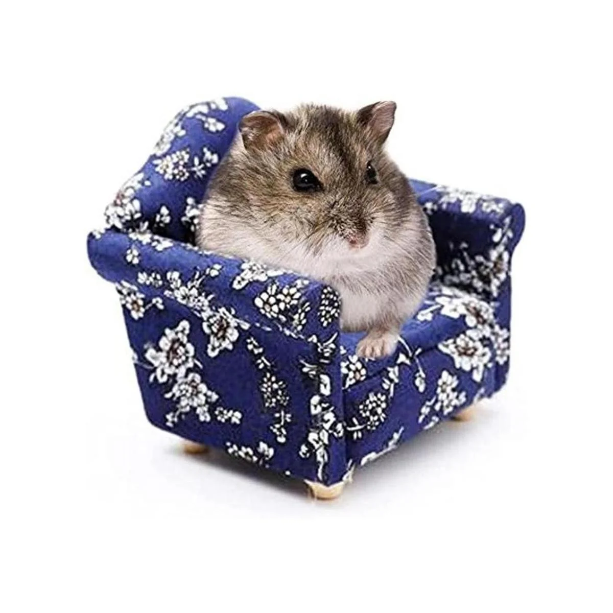 KnocKconK Hamster Mini sofá de algodón, pequeño animal azul rojo cama acogedora con almohada, decoración de jaulas, accesorios para casa de hábitat relax, nido de reposo para hamster, ratones, ratas.