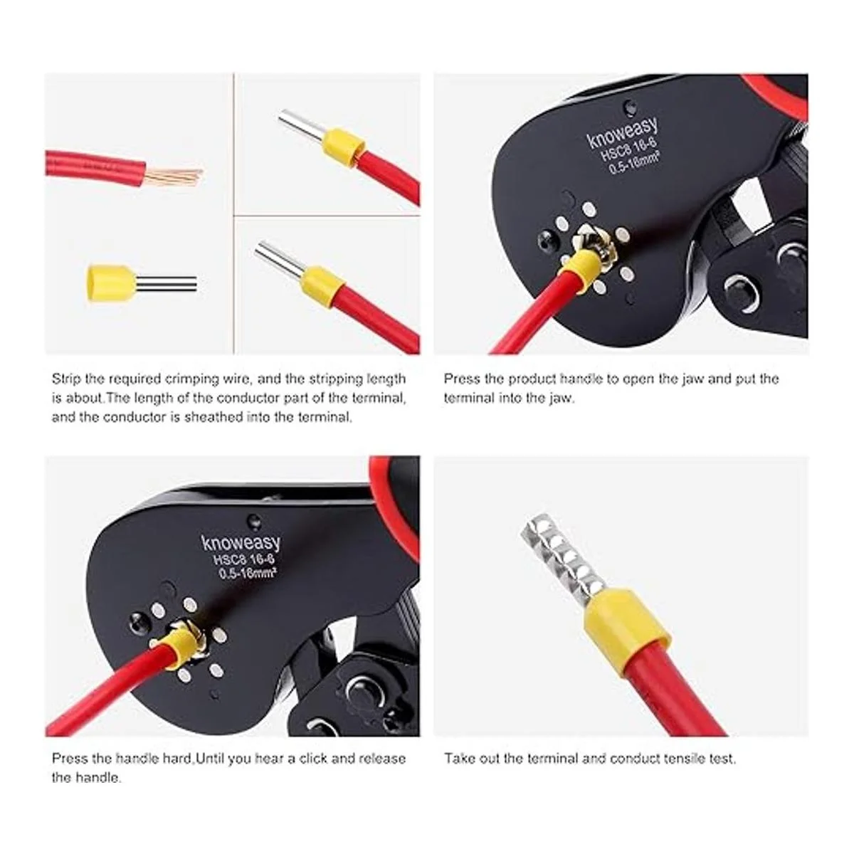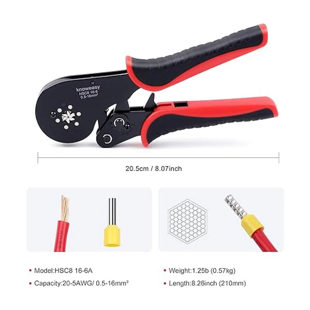 Knoweasy Herramienta de crimpado hexagonal, herramienta de crimpado de férulas de 166 y engarzador de férula de alambre hexagonal utilizado para mangas de extremo de cable de 305 AWG0.516 mm