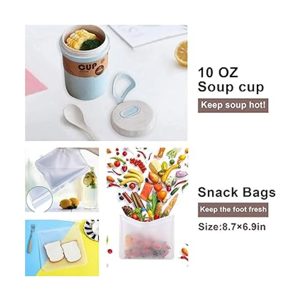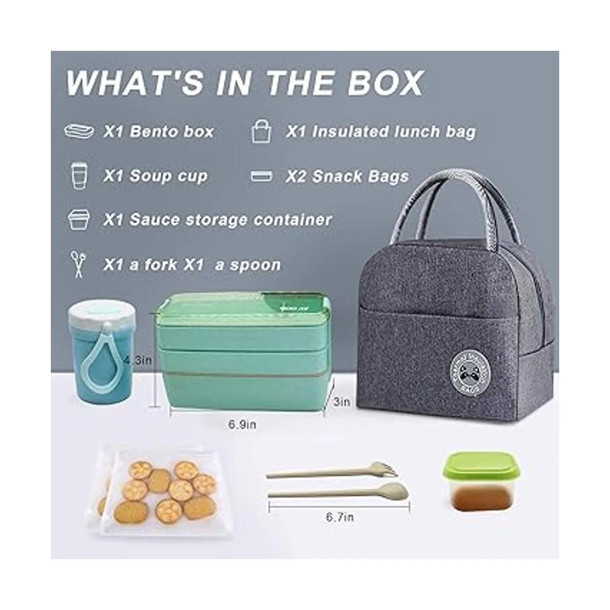 Lo que obtendrás: Nuestro kit de lonchera incluye todo lo que necesitas: una caja bento; una lonchera aislada; una taza de sopa; un recipiente de almacenamiento de salsa; dos bolsas de bocadillos, un tenedor y una cuchara. Proporciona comodidad para tu pícnic. Obtén nuestro kit de lonchera tipo bento, te encantará.