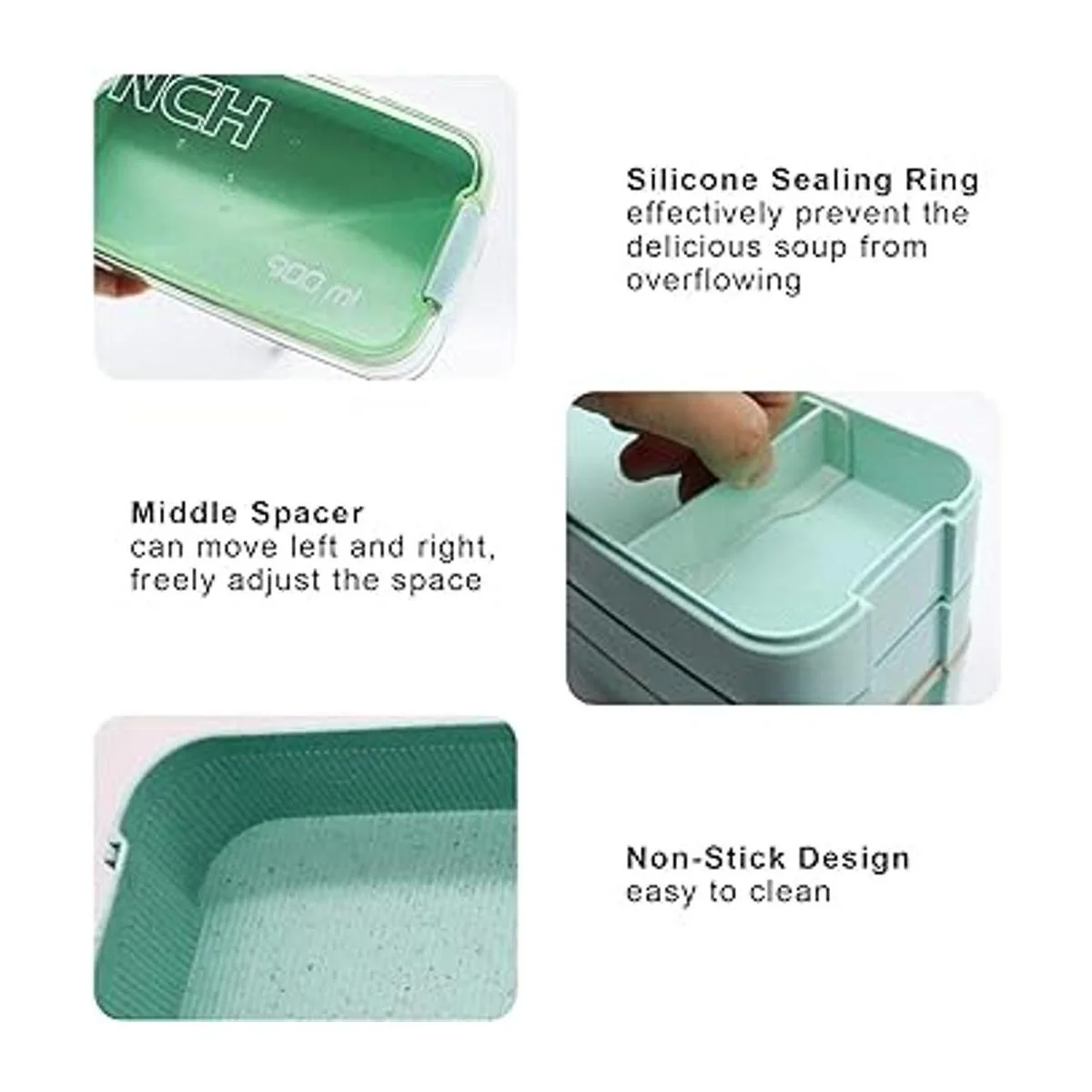 Koccido Kit de lonchera tipo Bento,caja de almuerzo japonesa 3 en 1 con compartimientos, apilable. a prueba de fugas, fibra de trigo, para niños y adultos
