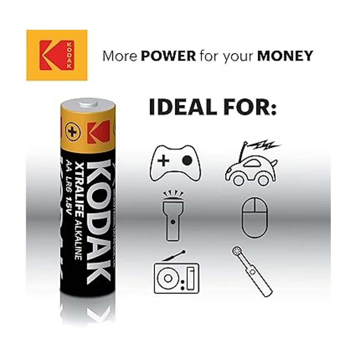 Ideal para dispositivos de drenaje alto y bajo: Kodak es una de las marcas líderes del Reino Unido, ofrece 12 baterías alcalinas más potentes de tamaño AA que las baterías de zinc, una opción perfecta para dispositivos de alto y bajo rendimiento de drenaje.