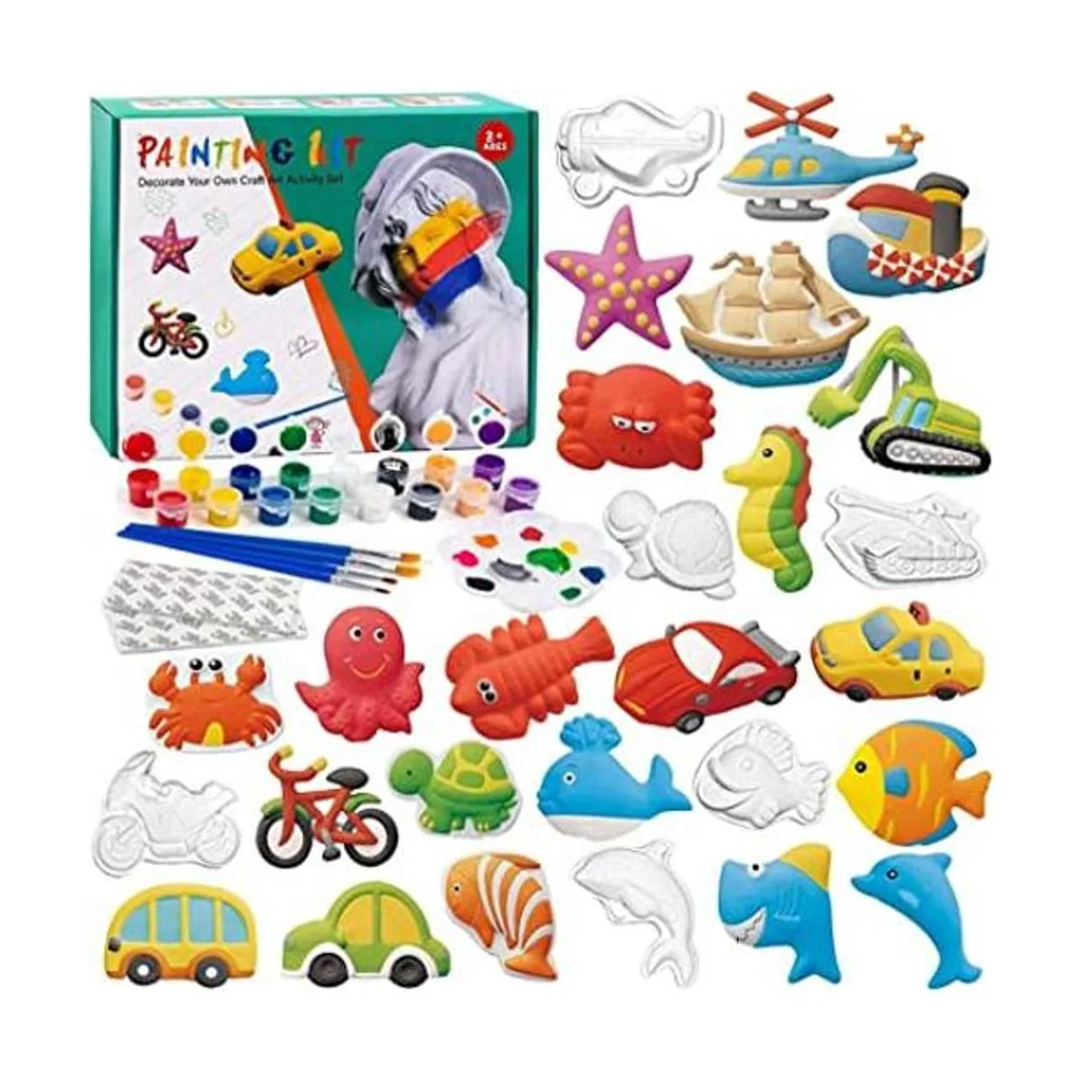 Kit de yeso de pintura: 27 figuras de pintura. Además, 2 x 8 colores de pintura, 4 bolígrafos de pincel, 1 paleta, 32 calcomanías e instrucciones de cómo mezclar colores todo incluido, un juego completo de pintura que a tus hijos les encantará