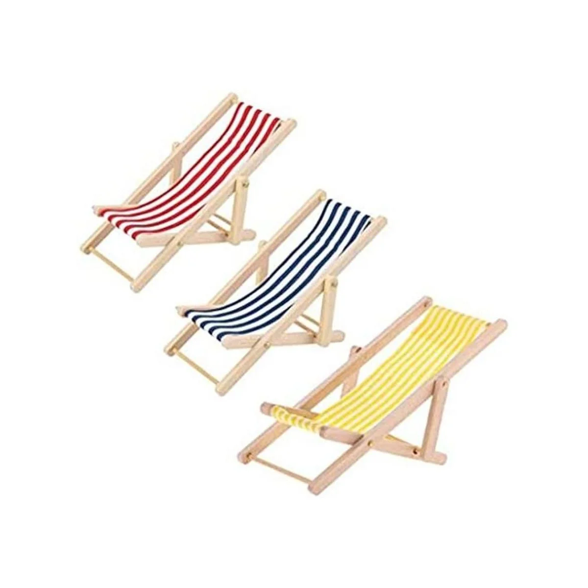 KODORIA 3 piezas de silla de playa plegable en miniatura de madera para Mini Deck Silla de longue Mini Muebles Accesorios con rayas rojas y azules para interiores y exteriores