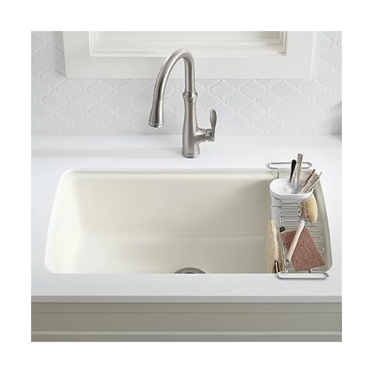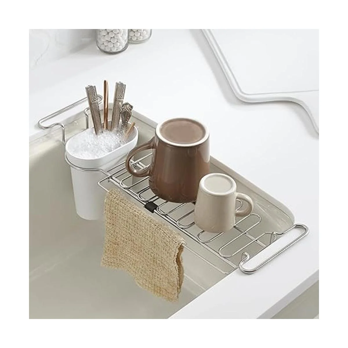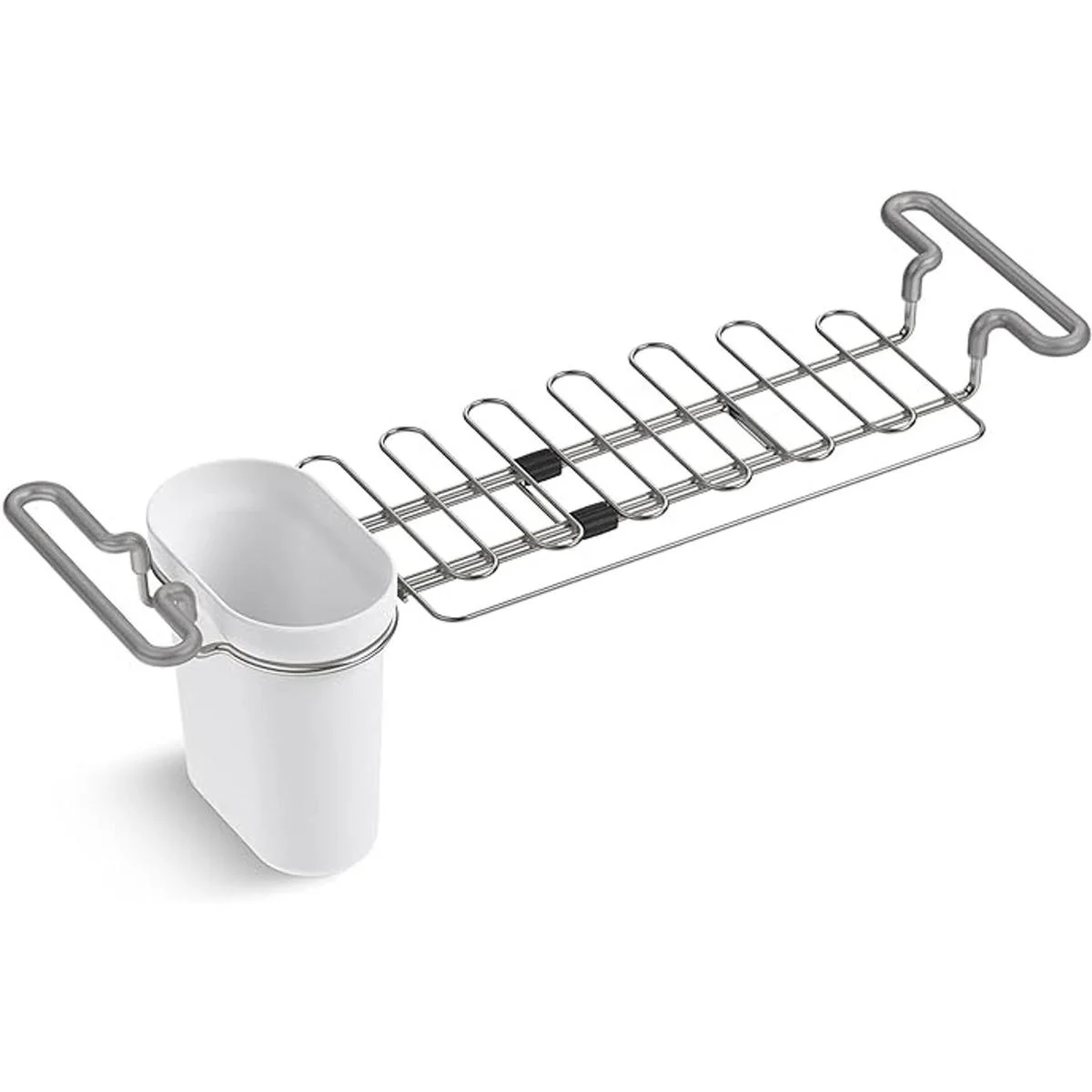 Removable soaking cup holds utensils and cleaning tools, includes dish cloth rail