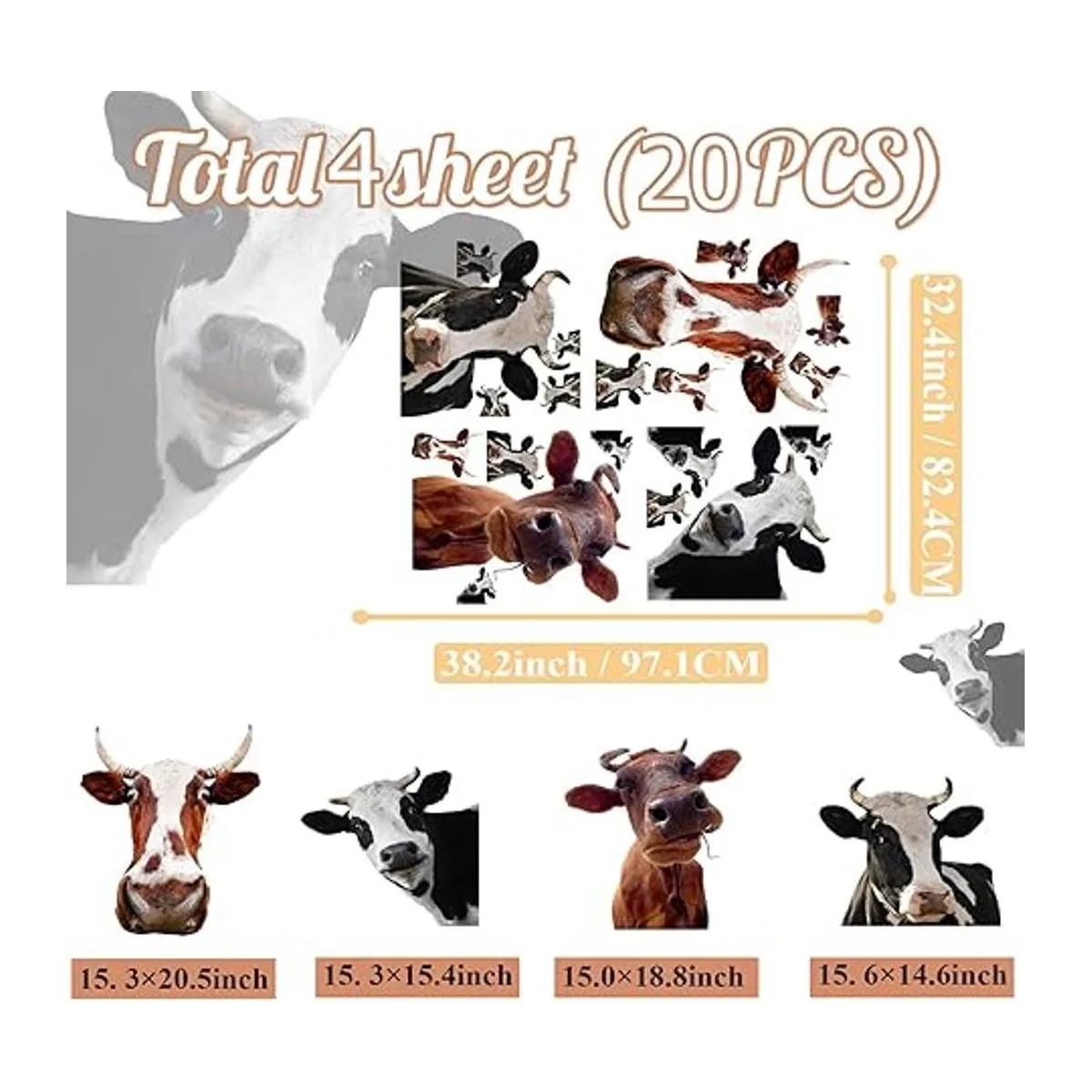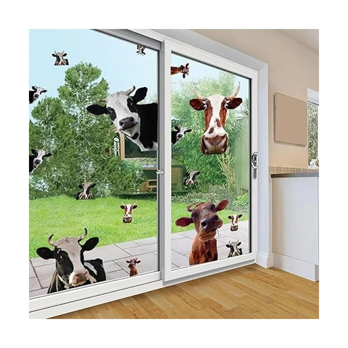 KOKOLAP 20 calcomanías divertidas de vaca, calcomanías de ventana de vaca, calcomanías de pared de vaca mirando y pegar, calcomanías de pared de animales lindos, calcomanías de vinilo de arte animal lindo para ventanas, se pegan, decoración de sala de estar, cocina