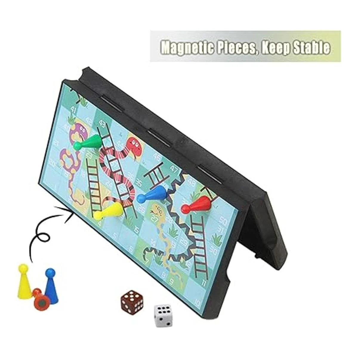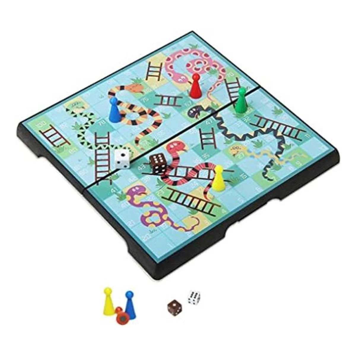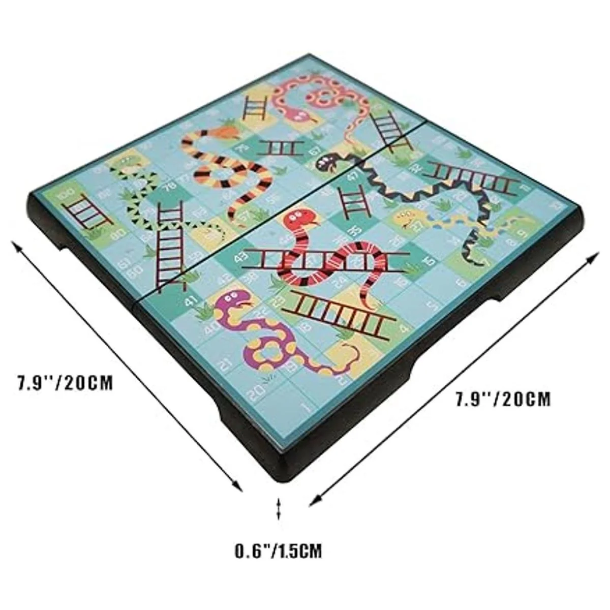 KOKOSUN Snakes and Ladders Mini juego de mesa de 7.9 pulgadas, con tablero de ajedrez plegable magnético, juguetes divertidos para la familia, regalo para niños y adultos