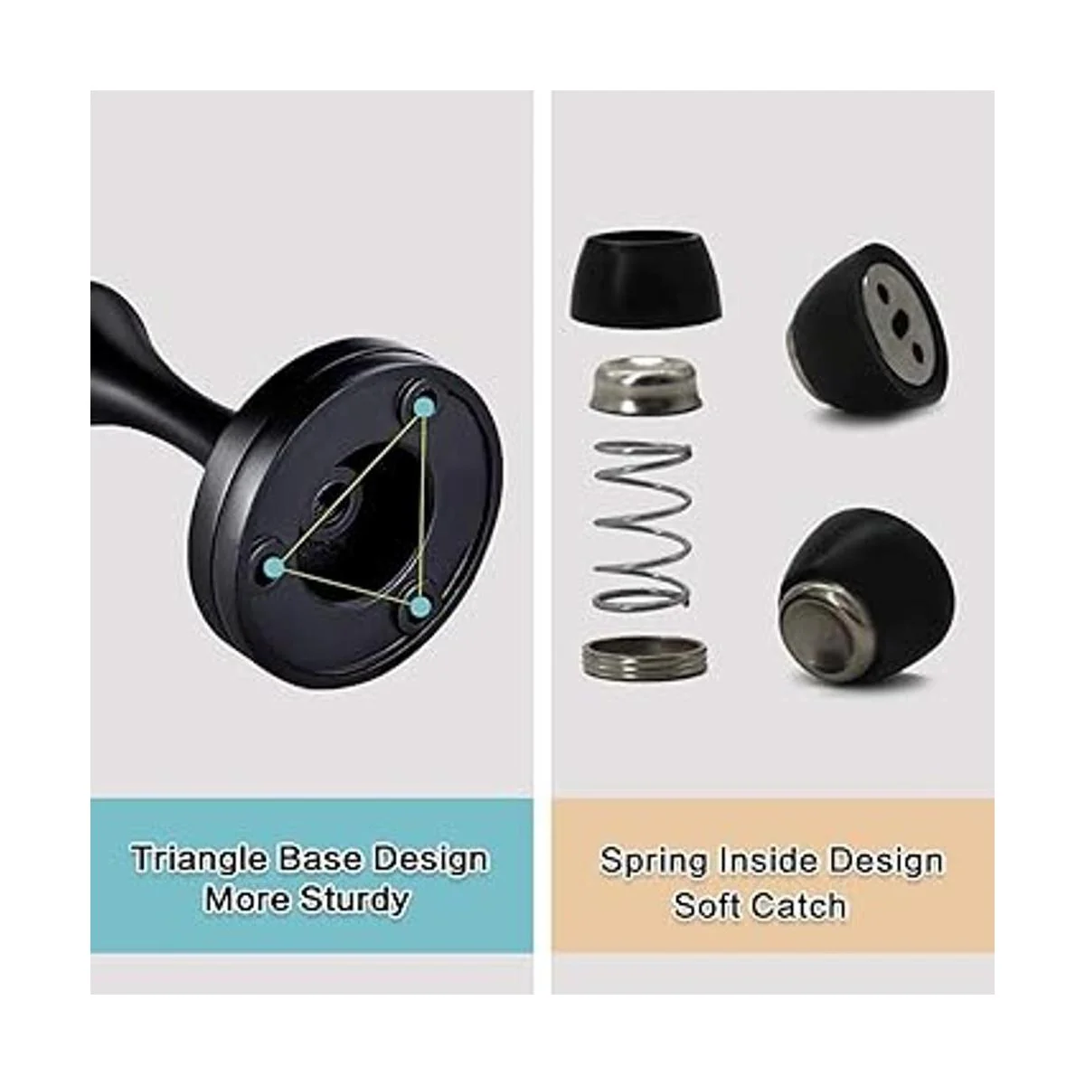 Tecnología de captura suave y diseño triangular estable: con tecnología integrada de puertas de captura suave y exquisito amortiguador de resorte, los topes magnéticos de puerta evitan que la puerta se golpee y se apague, puede detener y sostener las puertas de forma suave y silenciosa. Y la base diseñada en triángulo hace que la puerta sea más resistente y estable.