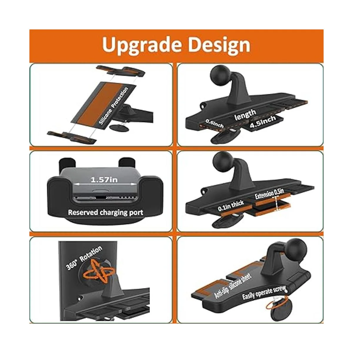 ngulo de visión perfecto ajustable de 360: articulación esférica giratoria de 360 grados para un ángulo de visión perfecto, y puedes sostener tu teléfono móvil o tableta vertical, horizontal o diagonalmente en el coche. Instala el soporte en el reproductor de CD del coche, un lugar al alcance de tu mano, una posición más segura al nivel de los ojos, no bloqueará tu vista.