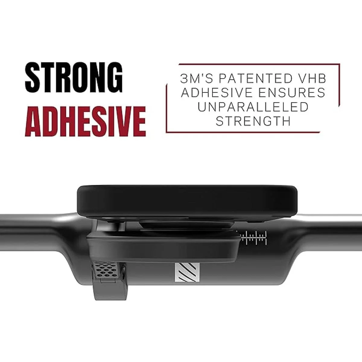 Fuerte y seguro: en el desarrollo, fuimos con un enfoque sin compromiso para garantizar la máxima resistencia de la unidad. A partir de nuestras pruebas encontramos que el adhesivo VHB patentado de 3M era con mucho la mejor opción del mercado para nuestro soporte para teléfono celular Garmin. Las pruebas de laboratorios independientes verificaron esto cuando mostraron que se necesita una fuerza máxima de tracción de 27,5 KGF para quitar el adhesivo de la unidad.