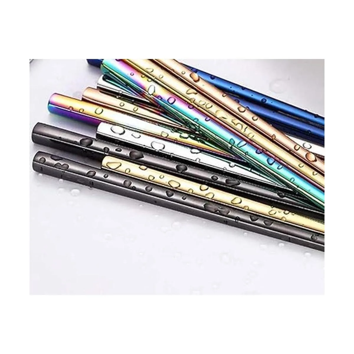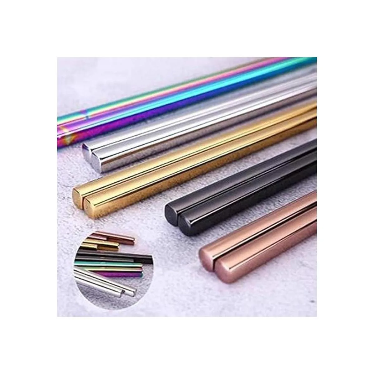 Koolemon Juego de 5 palillos de acero inoxidable 304 multicolor pulido, palillos de metal reutilizables, aptos para lavavajillas, picadores tradicionales, 9.5 pulgadas