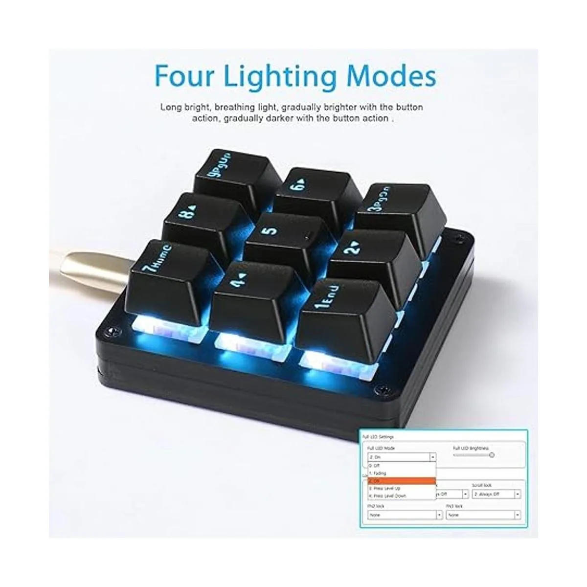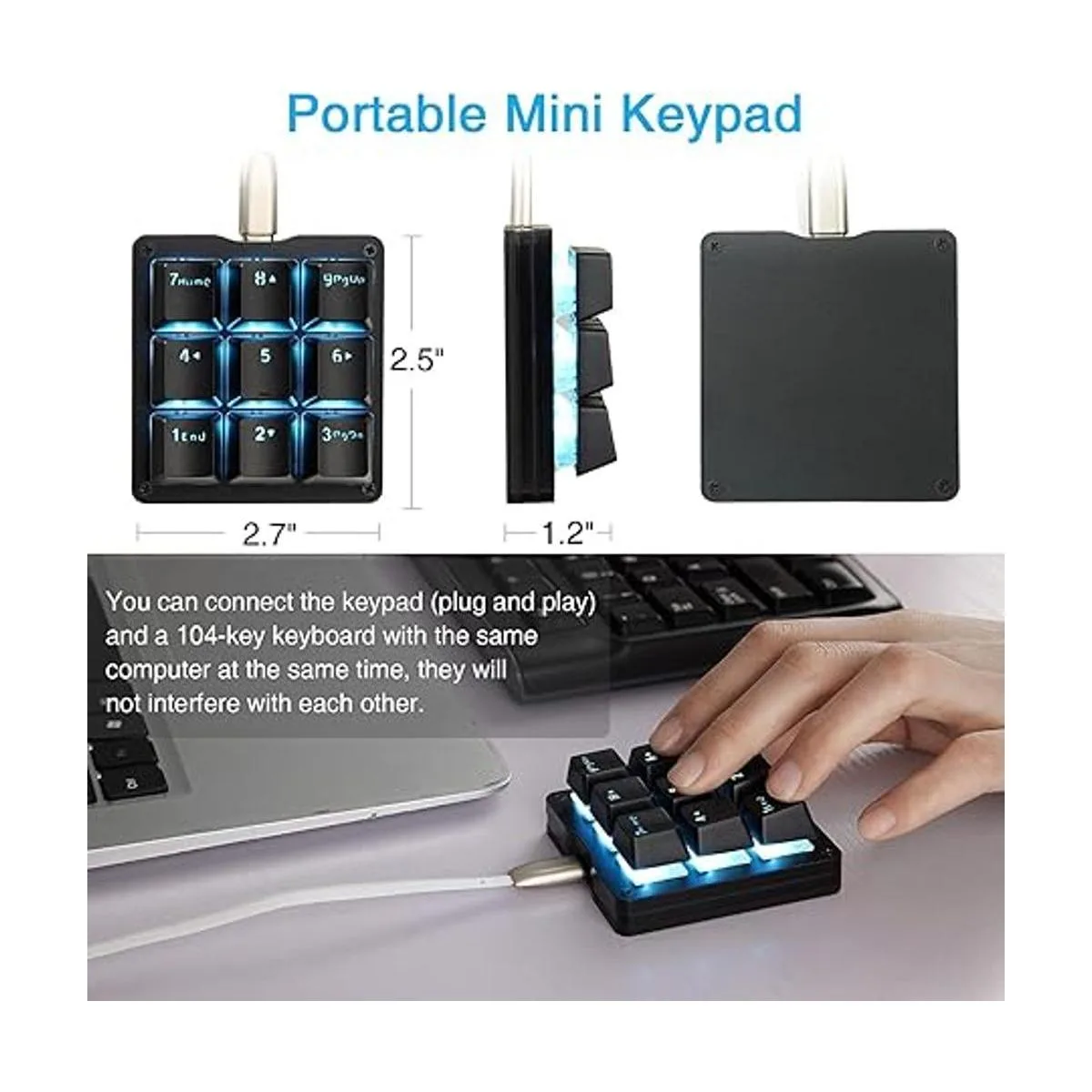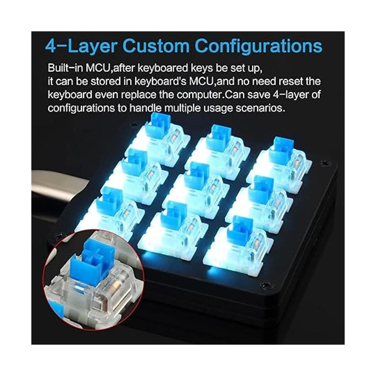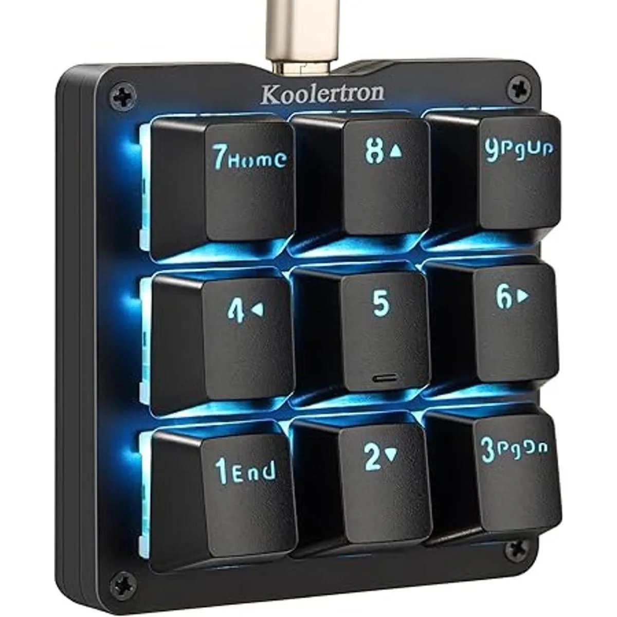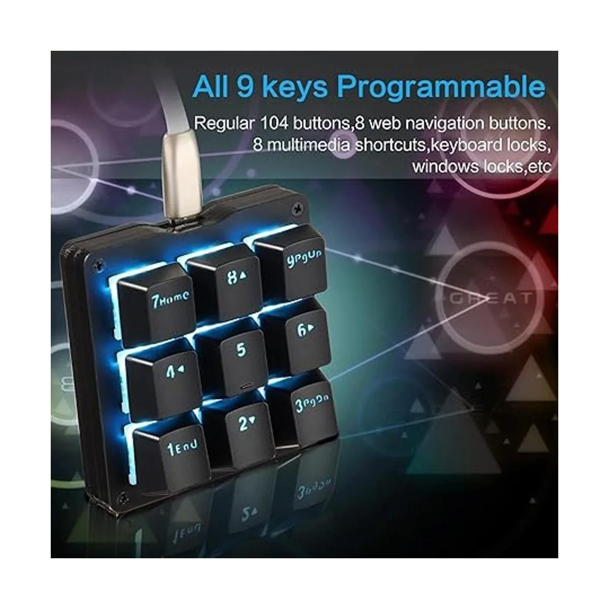 Koolertron Teclado mecánico macro de una mano, teclado mecánico portátil retroiluminado LED azul, mini teclado mecánico para juegos con una sola mano, teclado OSU, 9 teclas totalmente programables, interruptores negroazulLED azul