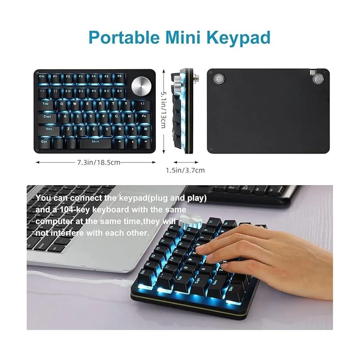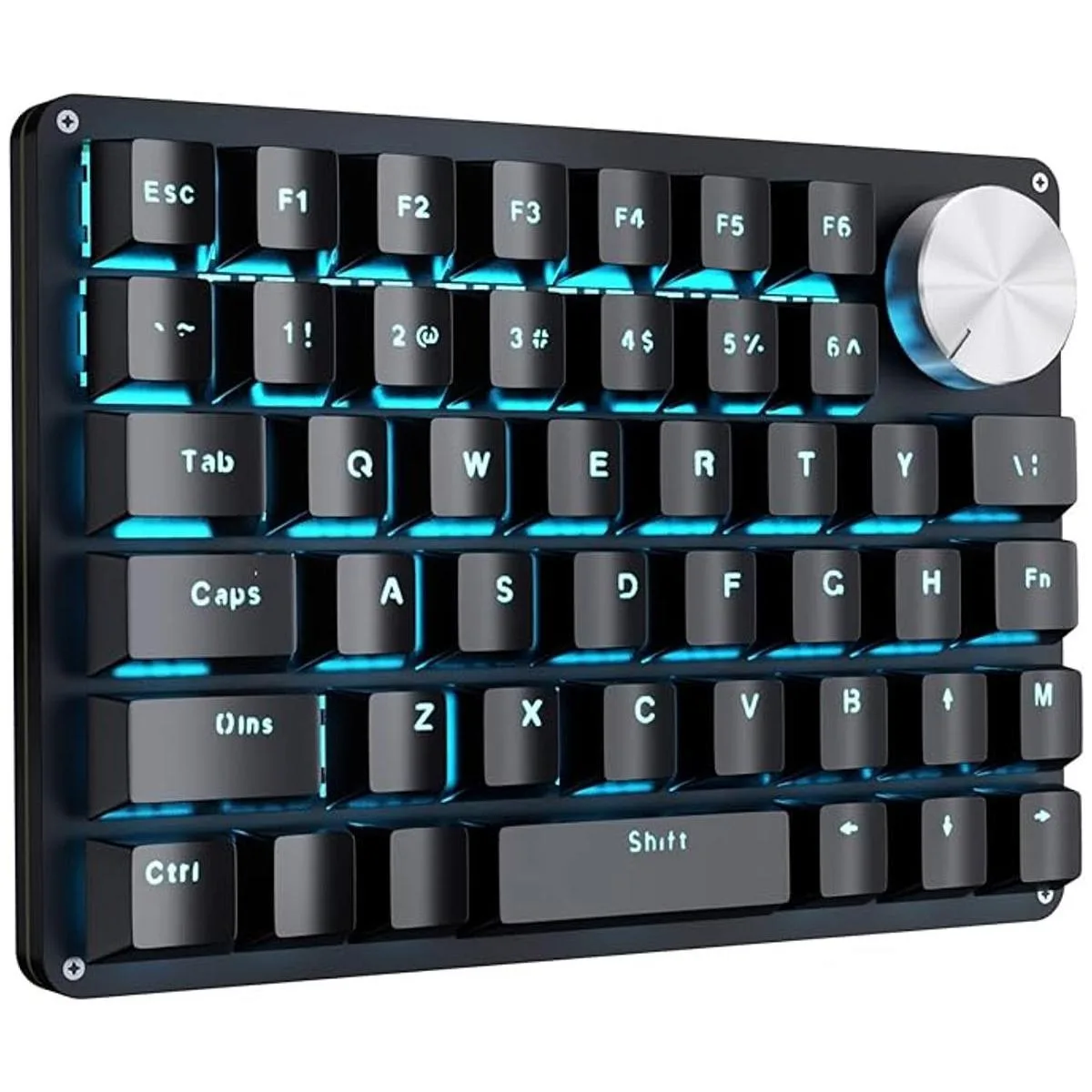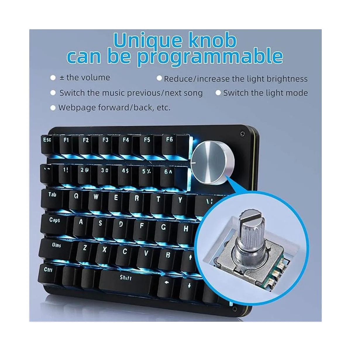 Koolertron Teclado mecánico para juegos con una mano, teclado programable, perilla giratoria de 45 teclas retroiluminadas azulinterruptores azules para jugadores de PC con Windows