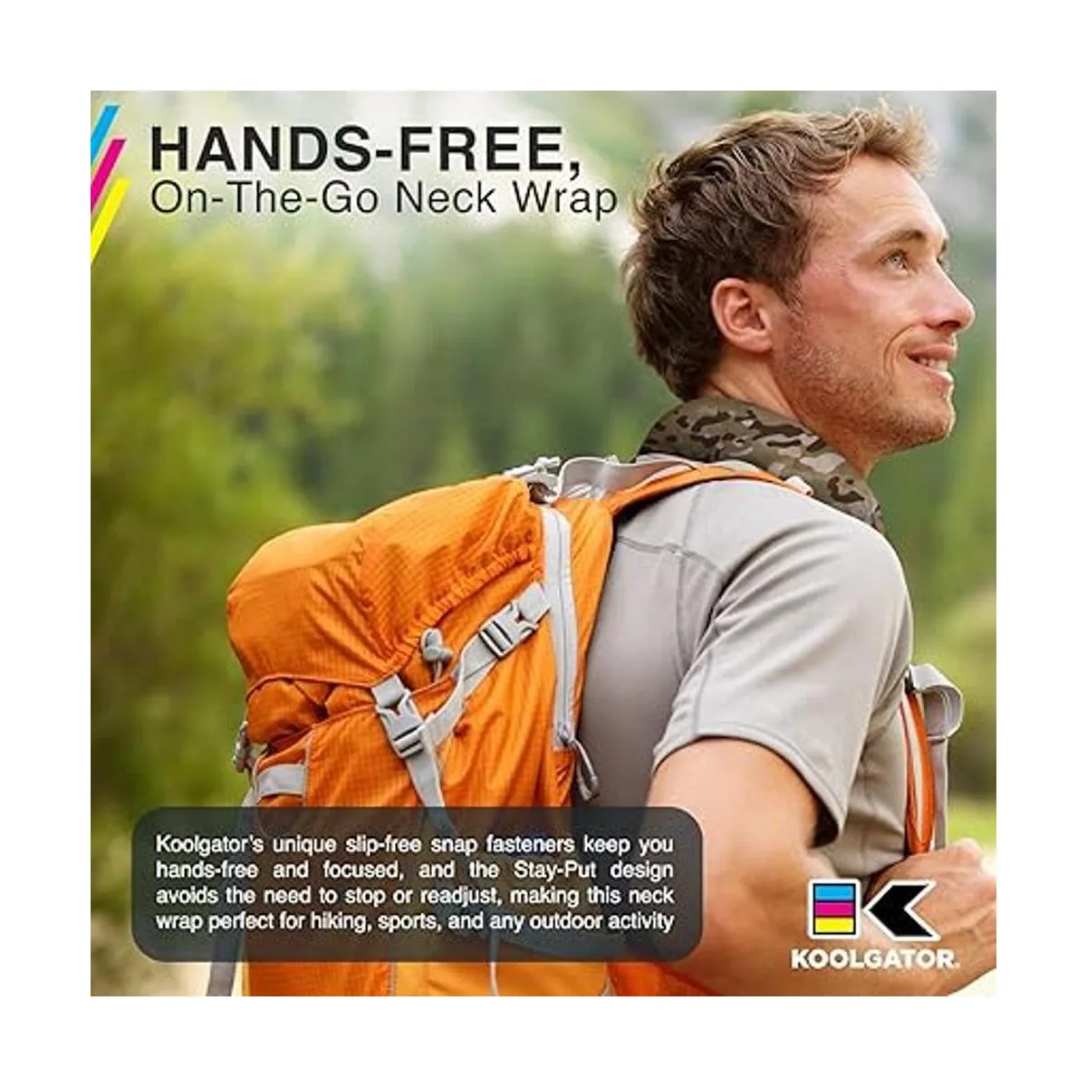 Envoltura de cuello de manos libres para llevar a donde quieras: Koolgator cuenta con cierres de presión únicos y antideslizantes para que puedas tener las manos libres y mantenerte enfocado en lo que estés haciendo, y el diseño que no se mueve de su lugar evita la necesidad de parar para ajustarlo, lo que hace que esta envoltura para el cuello sea perfecta para hacer senderismo, deportes y comer al aire libre.