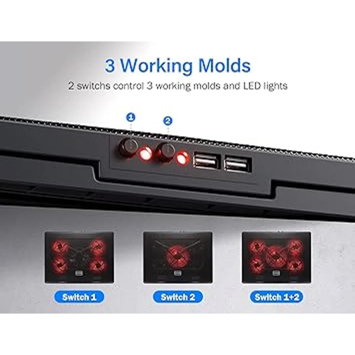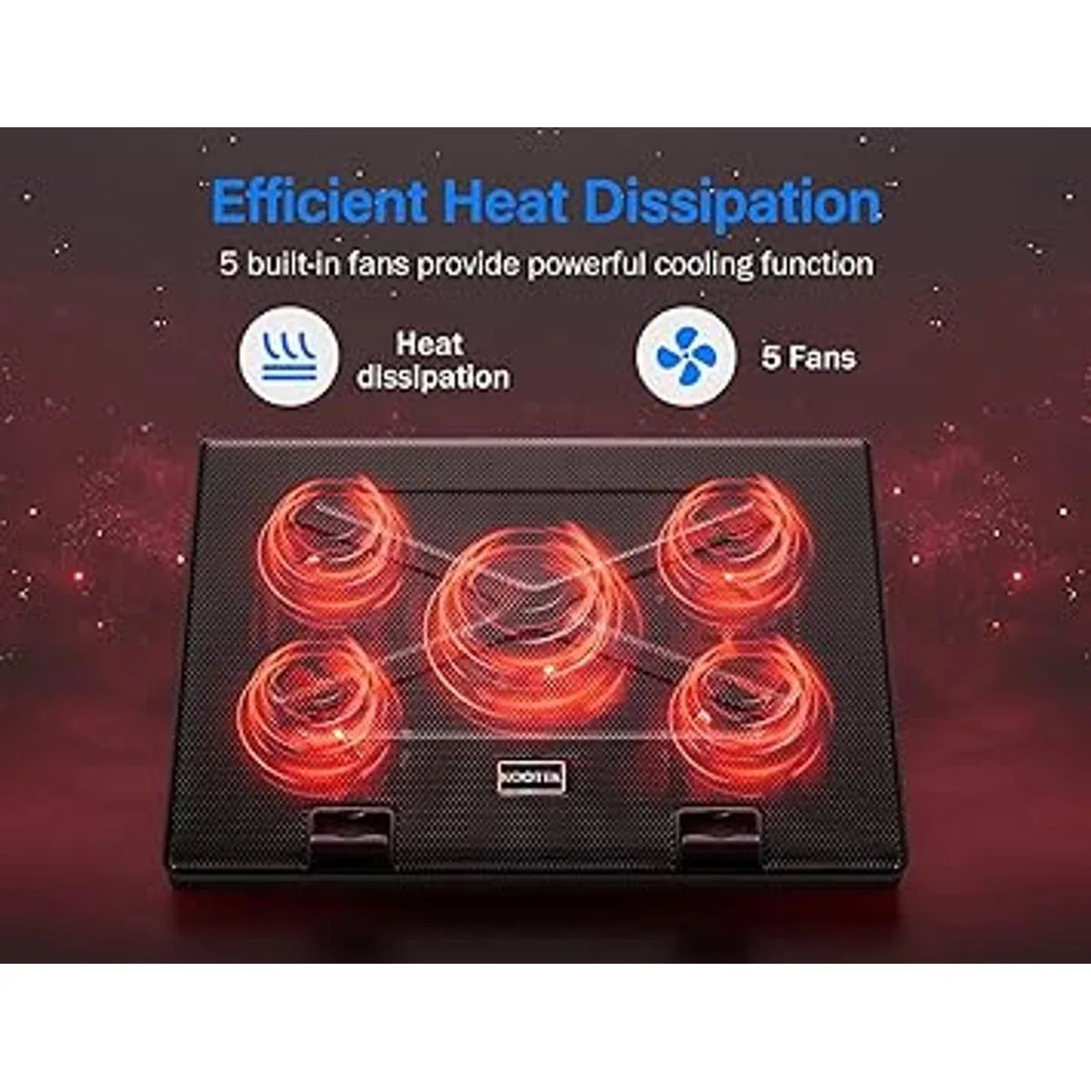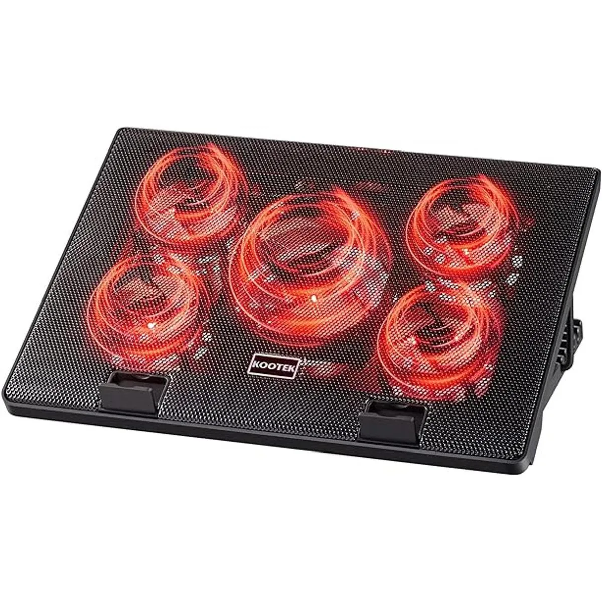 Kootek Almohadilla de refrigeración para laptop de 12 a 17 pulgadas, 5 ventiladores silenciosos, luces LED y 2 puertos USB 2.0, soportes ajustables, ángulo de altura de soporte para laptop, color rojo