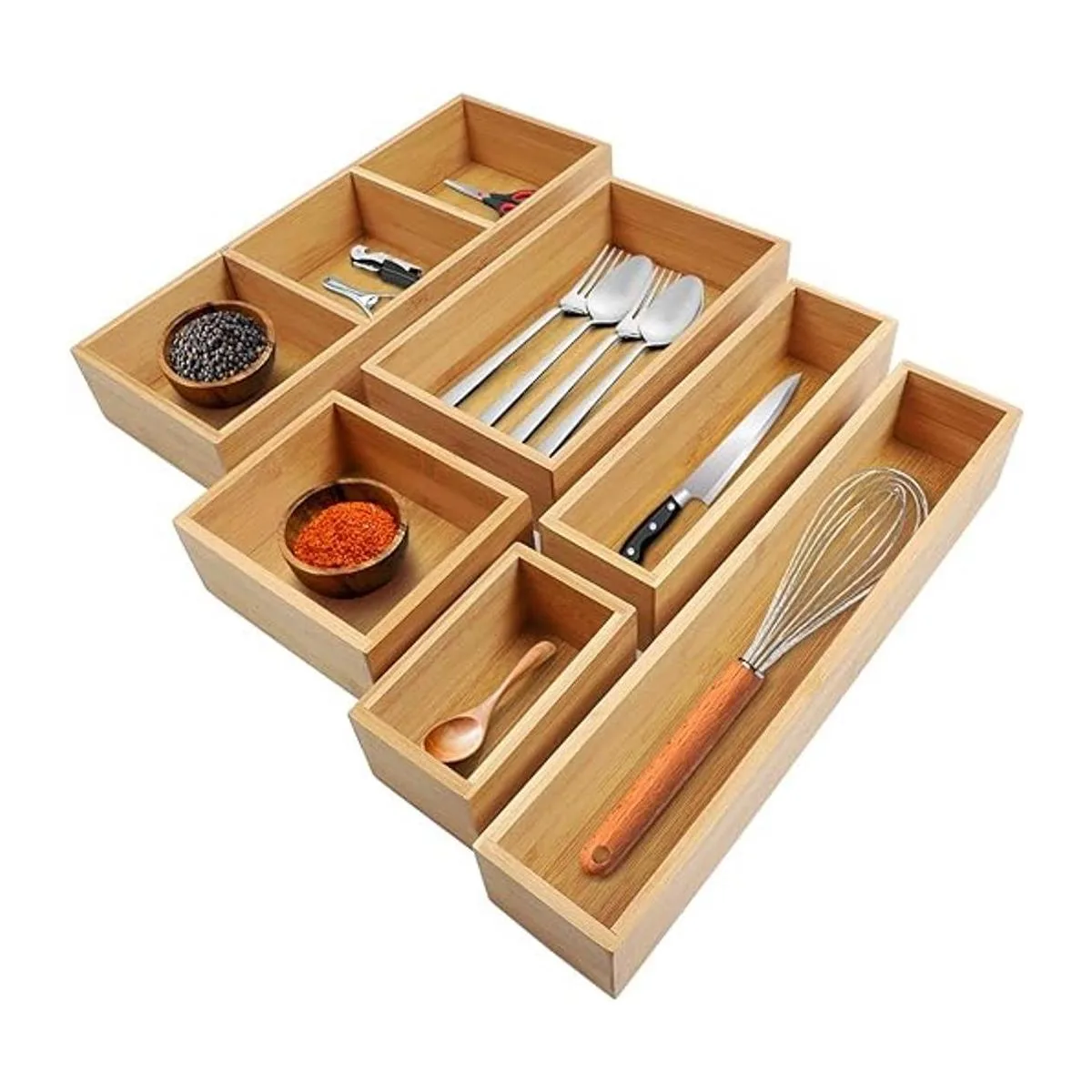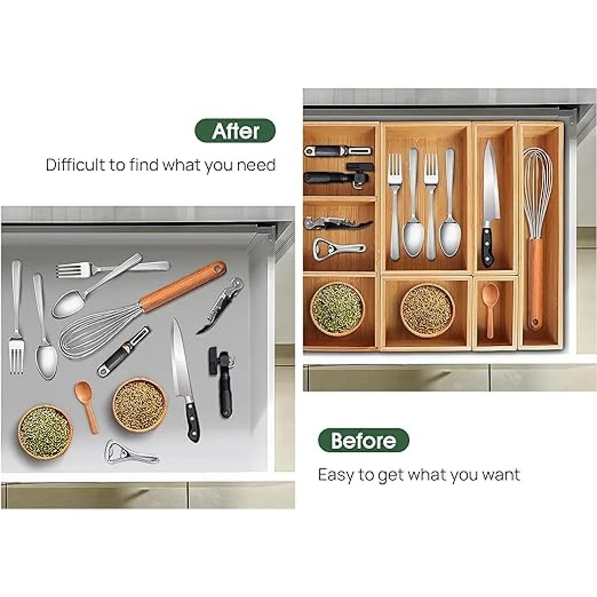 Kootek Organizador de cajones de cocina para utensilios, 6 piezas de 8 rejillas, organizador de cajones de bambú con separadores extraíbles para despensa, armario, escritorio y oficina